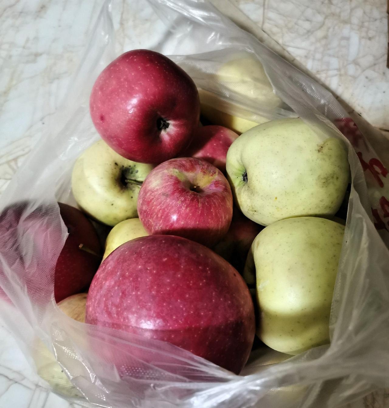 25元钱买一大兜子四个品种的苹果! 泡崖子的苹果太便宜了! 昨天晚上5点钟,天还飘着小雨,我到朋友家,给他们送点我在鱼港买的渤海刀鱼! 在泡崖33路公交车站附近,看到一位农户拉满满的一大车苹果,正在那叫卖呢,苹果10元钱三斤…… 苹果新鲜,很诱人,我立刻停车去买一大兜子,一共是4个品种的苹果,来一趟泡崖子不容易,多买点! 回家吃一个黄绿色黄金苹果,脆甜水分很足, 今天中午又吃了一个红色的,口感不错,酸甜口味…… 25元钱这一大包子苹果,我家能吃半个月,是不是很值! 友友们您说我在泡崖子买的苹果是不是便宜? 您那市场多钱一斤? #分享城市新鲜事# #秋日生活打卡季#