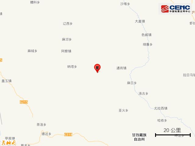 当天下午,四川省地震局发布消息,震中位于甘孜藏族自治州新龙县通宵镇,距新龙县县城约45公里,距甘孜藏族自治州约220公里,距成都市约403公里。