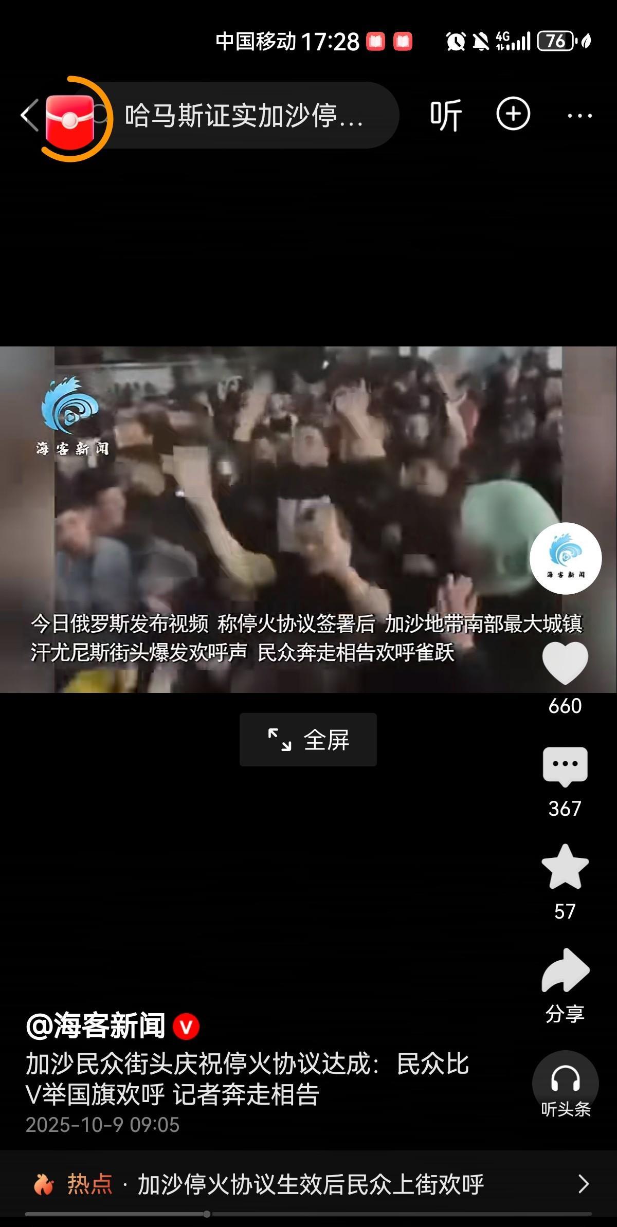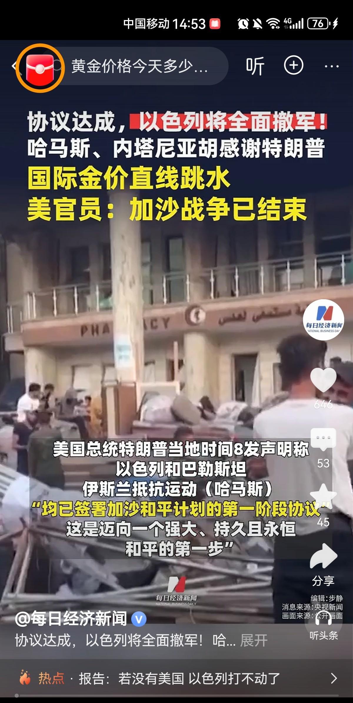 加沙停火协议签署:究竟谁输了,这是个局还是个坑? 加沙停火协议签署,这无疑是动荡局势中的一抹曙光。当地时间10月9日,哈马斯发表声明,与巴勒斯坦各抵抗组织达成一致,要结束加沙冲突、让以色列全面撤军、允许人道援助入境和实施人员交换。此前特朗普提出“20点计划”第一阶段协议,以色列与哈马斯均已签署。协议还包括开放5个过境点、调整撤军路线图等。 以色列设的局,还是挖的坑,哈马斯大势已去,根本打不过以色列。不过,最高兴的是特朗普,他喜欢出风头,好大喜功,这笔账会算在自己头上,还有机会拿诺贝尔和平奖。 对幸存者是个好消息,不过,这和平能持续多久还得打个问号。