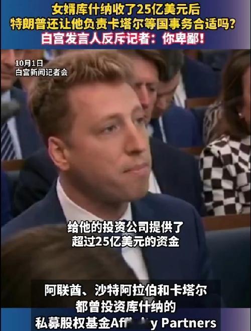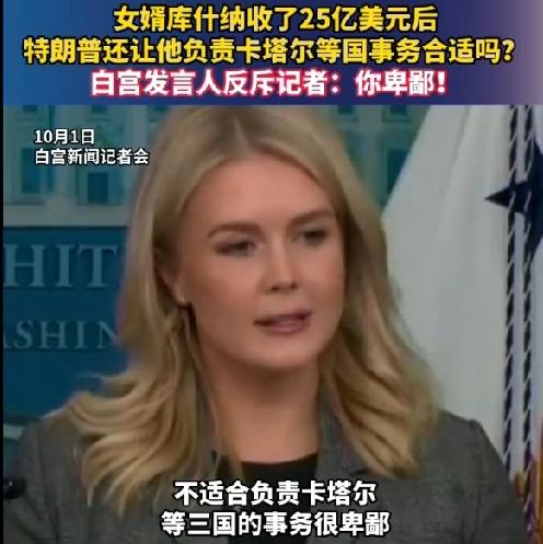 记者:女婿库什纳收了25亿美元后, 特朗普还让他负责卡塔尔等国事务合适吗? 白宫新闻秘书卡罗琳:坦白说,你暗示他不适合负责卡塔尔等三国的事务很卑鄙。 这就是美式民主下的美式问答,你可以提出任何问题,我可以以任何形式来回答你的提问。但有一点你必须清楚,话语权在我这里,我可以质疑你提问的动机,还可以因此侮辱你的人格,更可以随意践踏你的尊严,而不是去了解这件事的真相。所有这些,是因为牵扯到了一个人。这个人自然是特靠谱,因此只要牵扯到特靠谱的些须不利,很可能就会招来“你卑鄙”这种卡罗琳式羞辱。