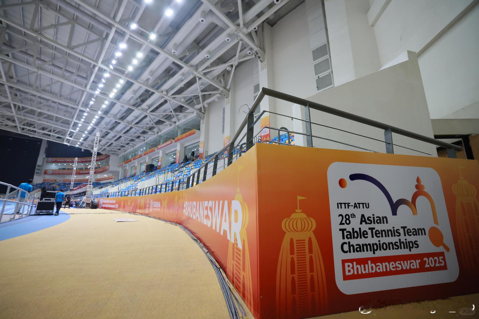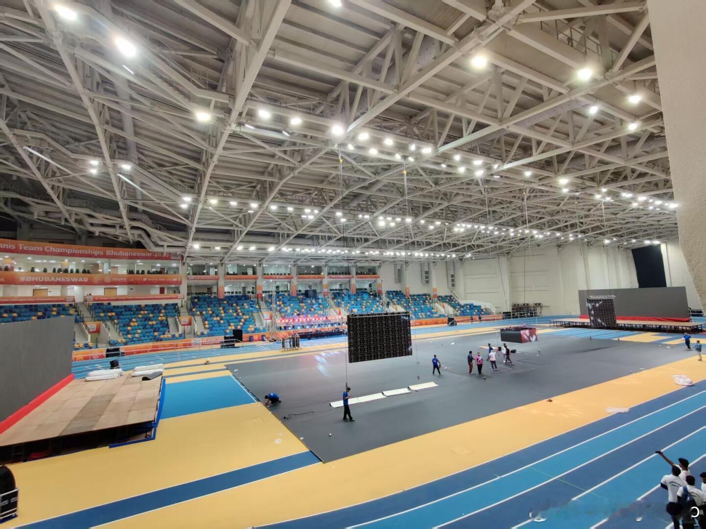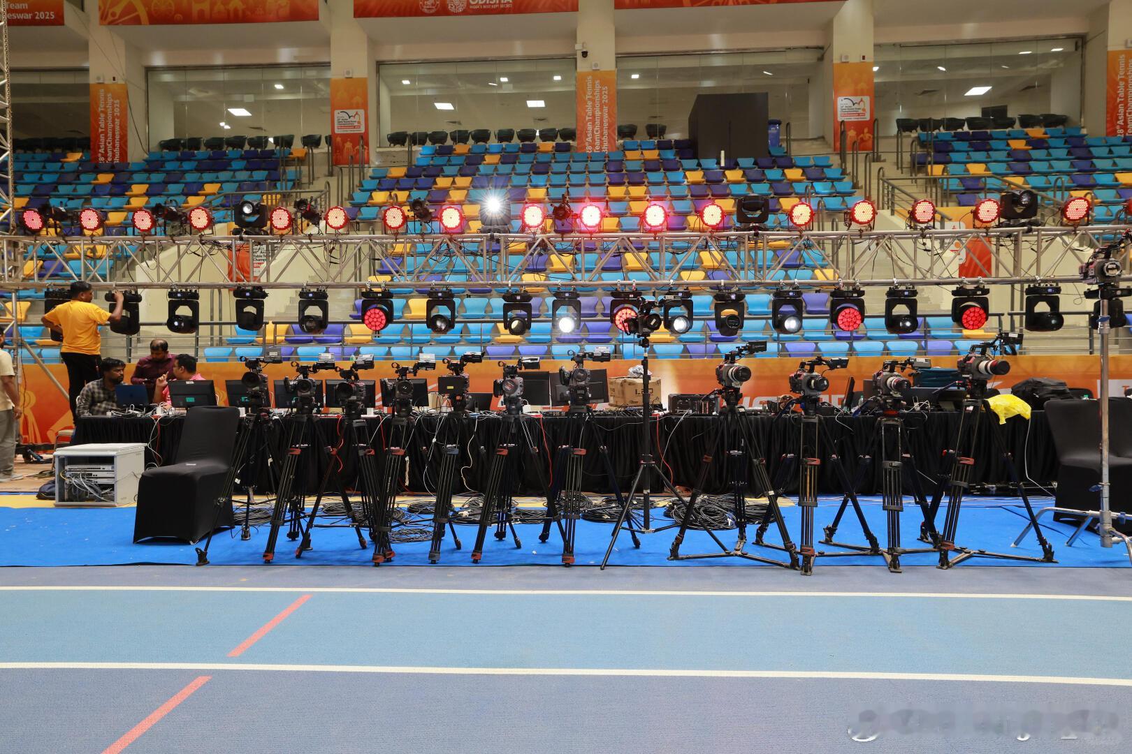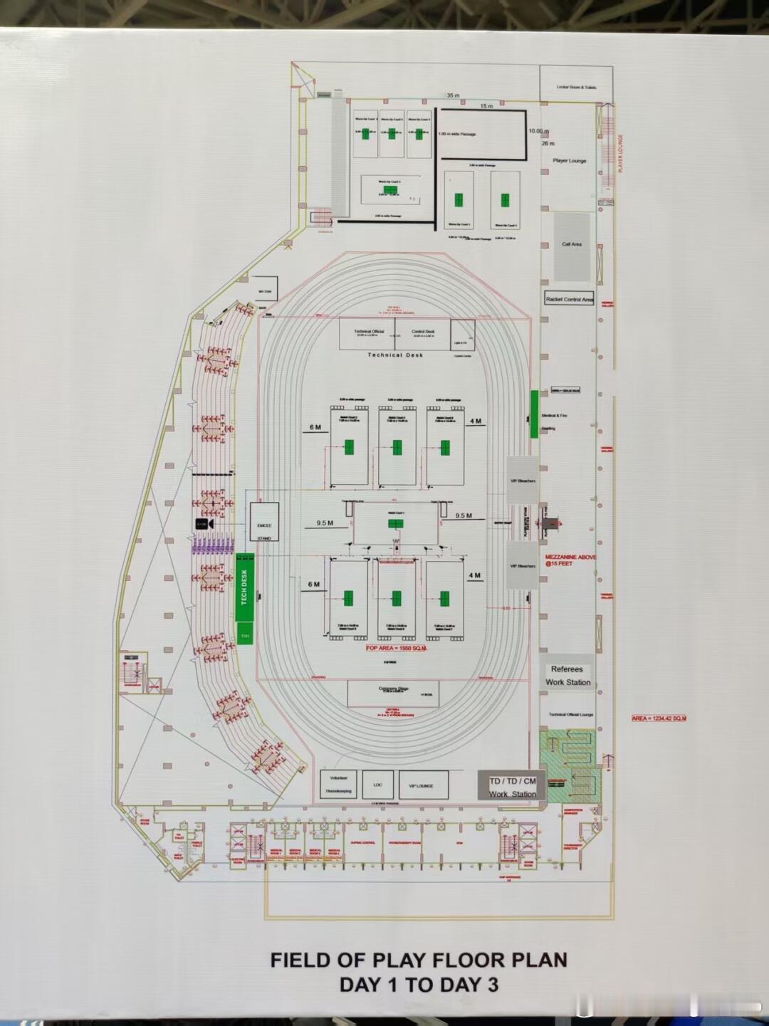 地胶铺设差不多了,电子屏、灯光、直播信号制作设备等还在架设中,今晚应该就会连夜准备好。估计明天再来看架好球桌的样子,感觉就会完全不一样啦。(cr:中体小编)