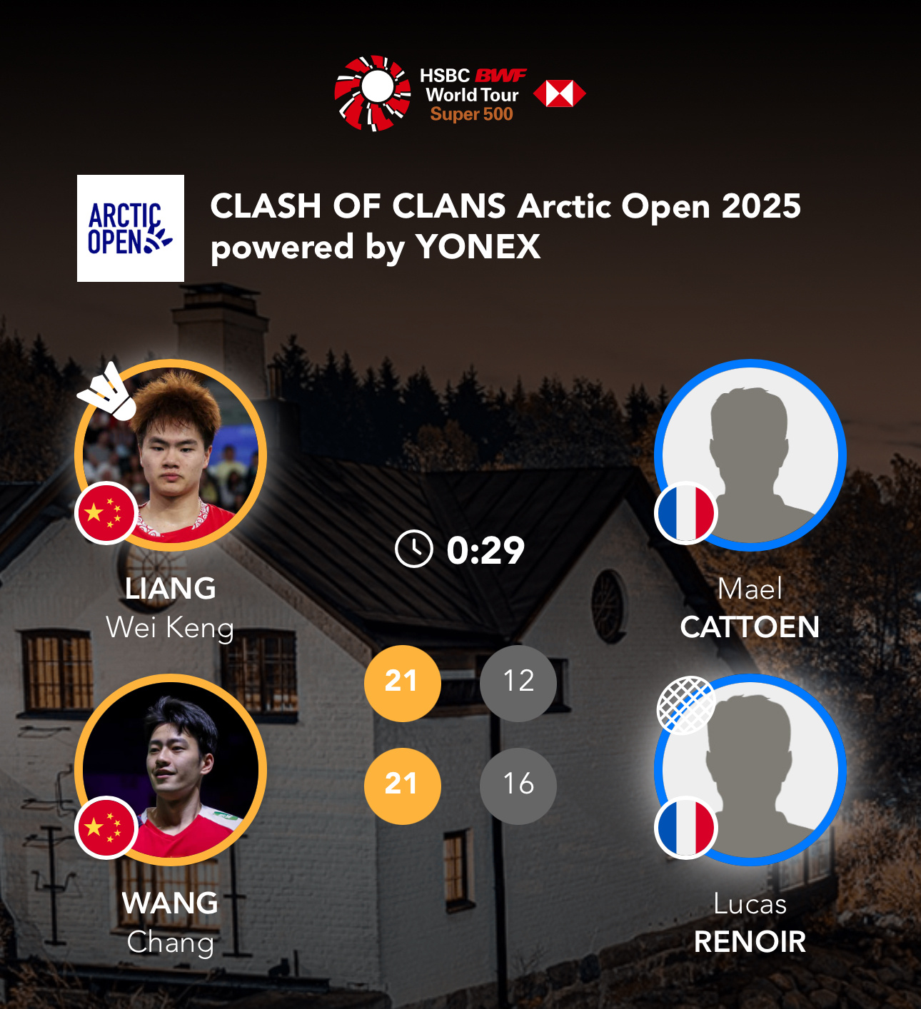梁伟铿/王昶VS卡托恩/雷诺阿