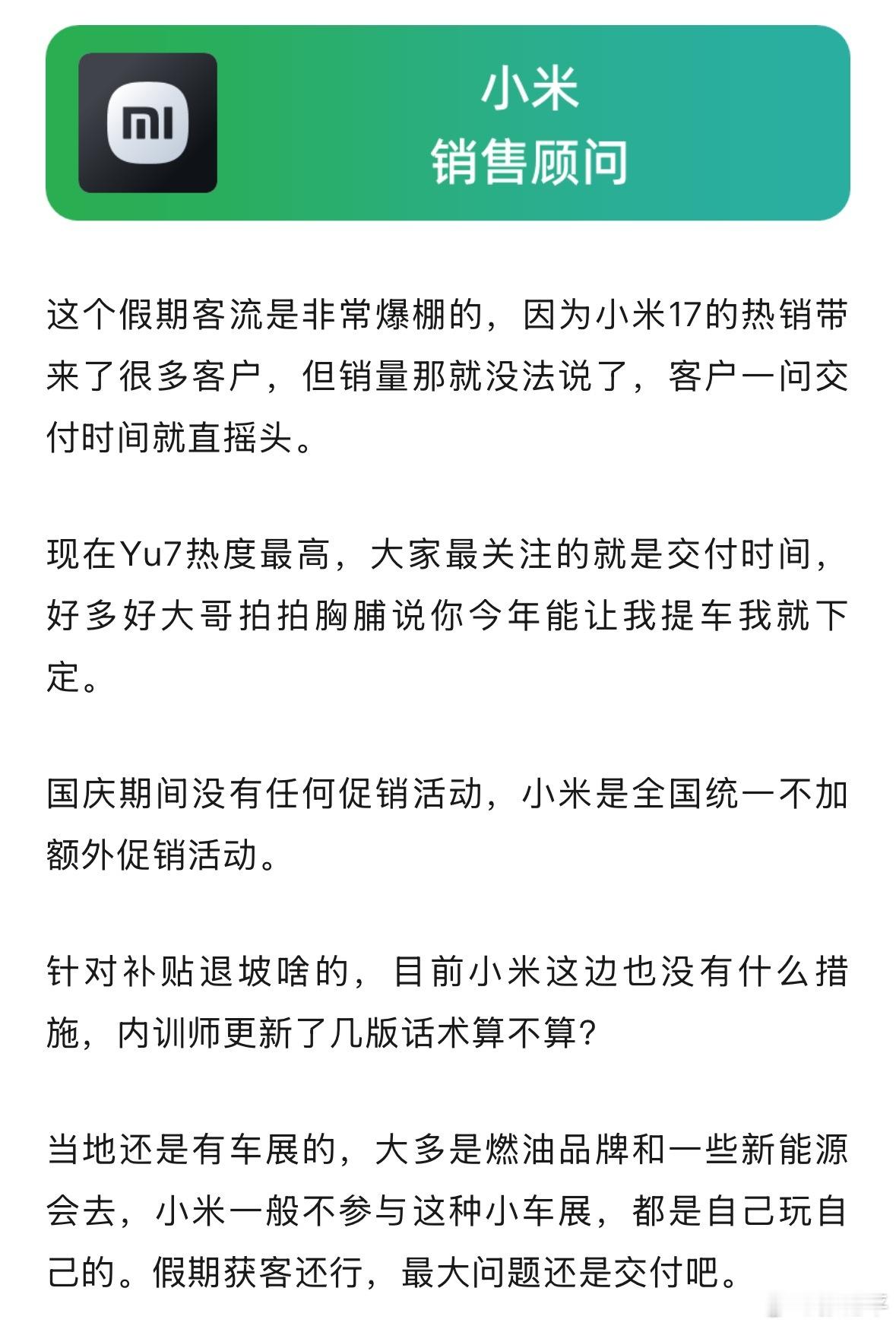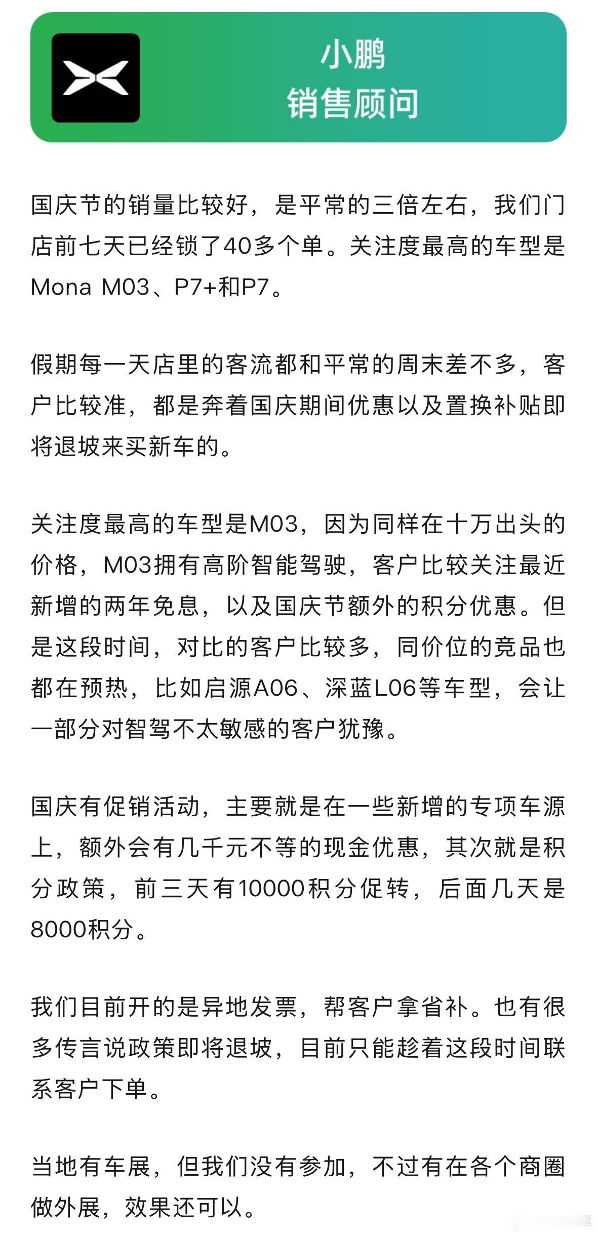 【五位新势力销售谈国庆假期门店情况】