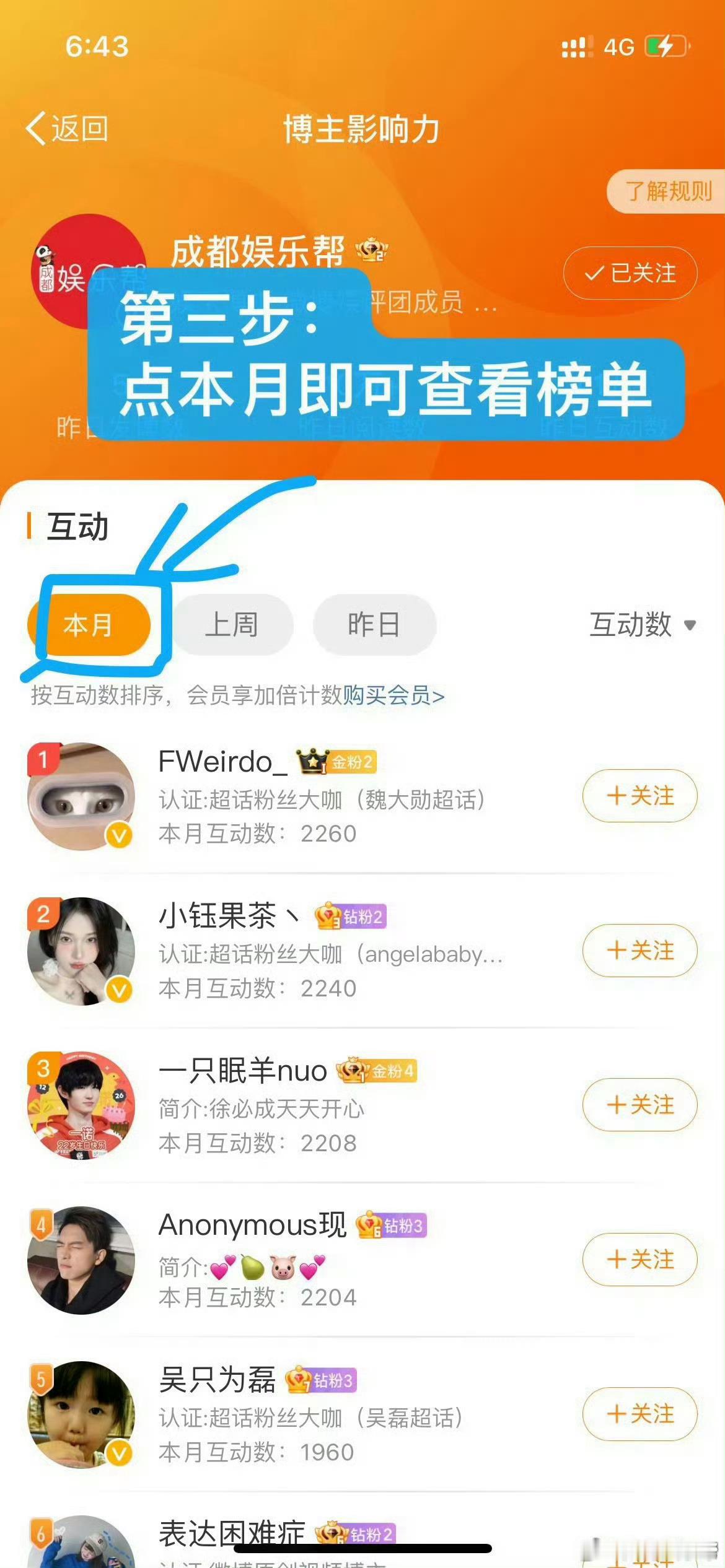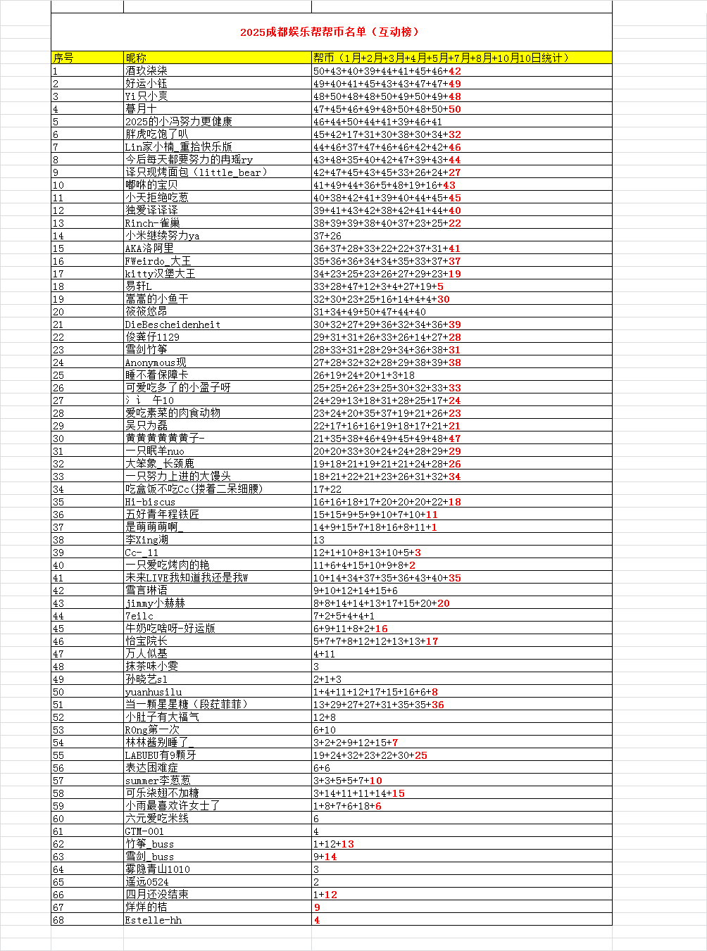 大家可自主查看互动榜排名,若上榜主页无互动行为(在成都娱乐帮赞、评、转均算,根据排名一月需至少10次行为)私信反馈,帮币+10。