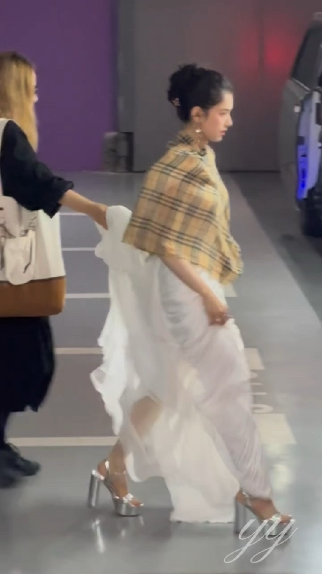 张婧仪白色长裙造型张婧仪披肩长裙上班路透