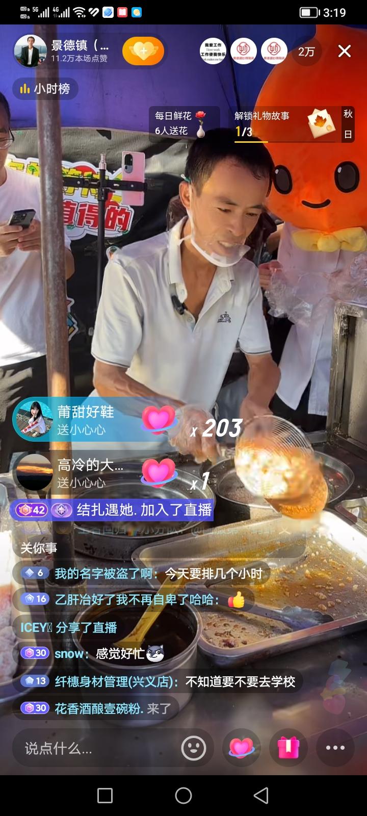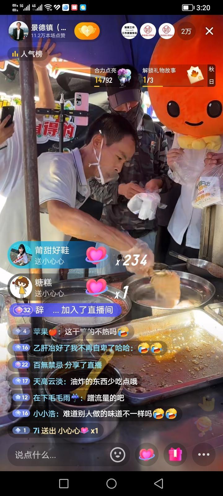 昨天鸡排哥休整了一天,理了个发。我知道很多人都等着今天看鸡排哥的笑话,认为网红嘛,一阵风就过去了,国庆已经结束了,今天不会有多少人了。 让你们失望了,我刚看了鸡排哥直播,在线人数始终稳定在2-3万,弹幕互动热烈,送礼物的观众更是络绎不绝,丝毫不见退潮迹象。 线下摊位同样延续了高人气,排队的队伍依旧很长,没有因为一天的休整而减少。更难得的是,鸡排哥的状态丝毫未受影响,服务热情和往常一样高涨,情绪价值给得十分到位——只要有观众提出拍照需求,他都笑着配合、有求必应,这份亲和力或许正是他能持续圈粉的关键。 所谓“休整即凉”的猜测,终究成了落空的期待。像“鸡排哥”这类网红的热度能持续多久 鸡排哥走红 景德镇面临流量考验 谁在偷走“鸡排哥”六块钱的快乐