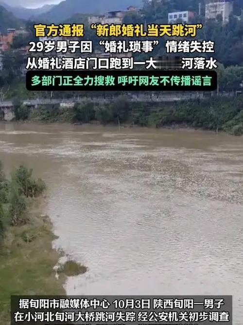29岁新郎结婚当天跳河,今天看新闻说找到尸体了,让人唏嘘不已。 据说新郎新娘在一起已经七年了,却在结婚时因琐事引发这次事件,新郎得有多绝望啊,才选择这种决绝的方式。 无论在一起多久,不合适分开就可以了,没有必要为了结婚而结婚。委屈了自己,也不会换来幸福的结果。 最可怜的莫过于父母了,新郎极端的一跳,结束了自己的生命,也断送了父母下半辈子的生活,让他们如何承受白发人送黑发人的痛苦? 这个事件告诉我们,从小要教会孩子控制情绪,遇到困难和挫折时,采取正确方法去面对,无论如何,生命都是第一位的。身体发肤受之父母,未还父母养育之恩,如何敢轻易放弃?新郎跳河 婚礼前新郎跳河 婚礼小伙跳河