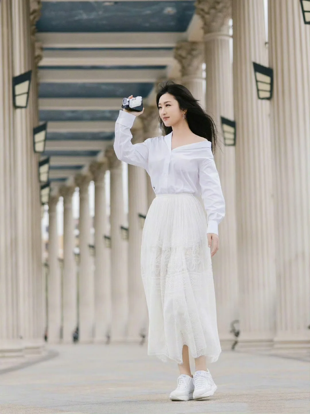 1988年,27岁的陈冲在上海街头,好喜欢这种年代感,穿的衣服现在也不过时