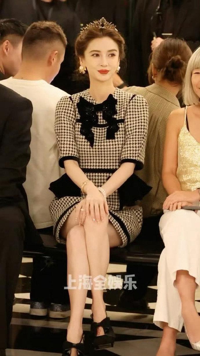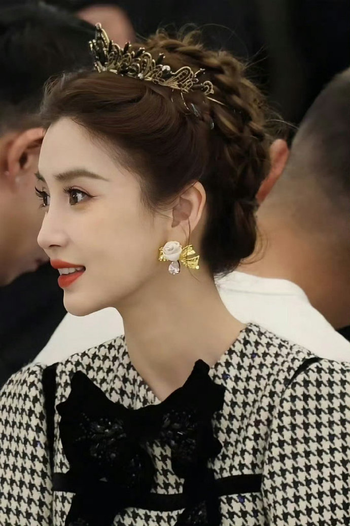 Angelababy真公主,谁懂这个千鸟格套裙皇冠完全是公主,生图也好漂亮,状态也很好啊~