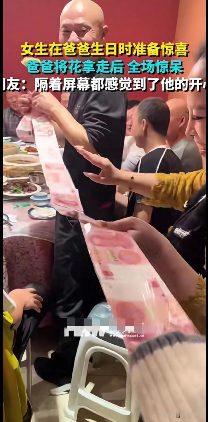 “家人们快来看!女儿给爸爸生日准备的惊喜,直接把全场都看呆了!” 本以为是普通的鲜花惊喜,结果爸爸一拿,居然是超长款“现金花束”!那场面,在座的亲戚眼睛都看直了。 网友直呼:“这哪是惊喜,这是‘钞能力’式的爱啊!” 隔着屏幕都能感受到爸爸那藏不住的开心,嘴角都快咧到耳根了。 你们给爸妈准备过啥特别的生日惊喜?快来说说,让我也学学这“天花板级”的孝心操作!