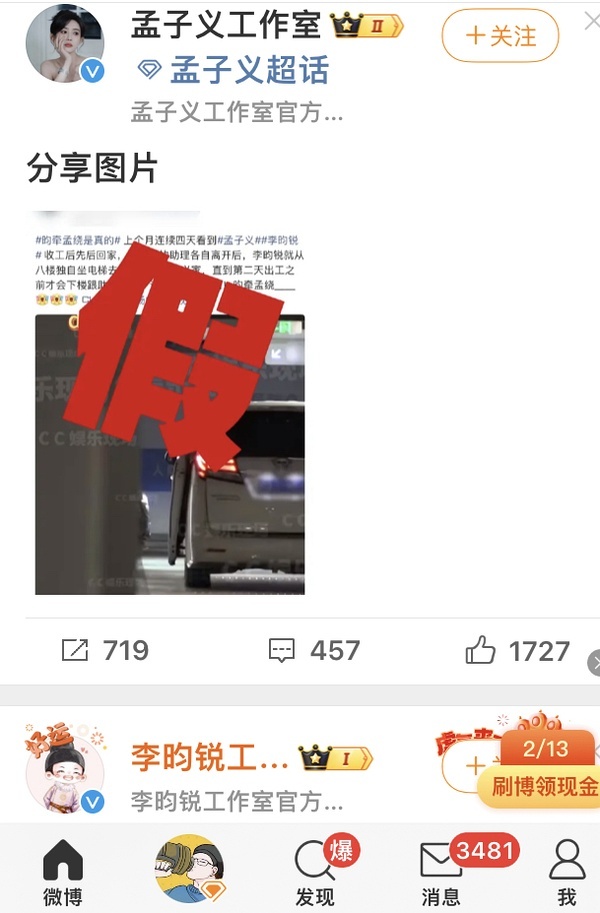 昀牵孟绕孟子义工作室抢先出来辟谣,看上去是一点也不想捆绑,这是要了CP粉的命啊,刚高兴了半小时,被告知昀牵孟绕是假的。