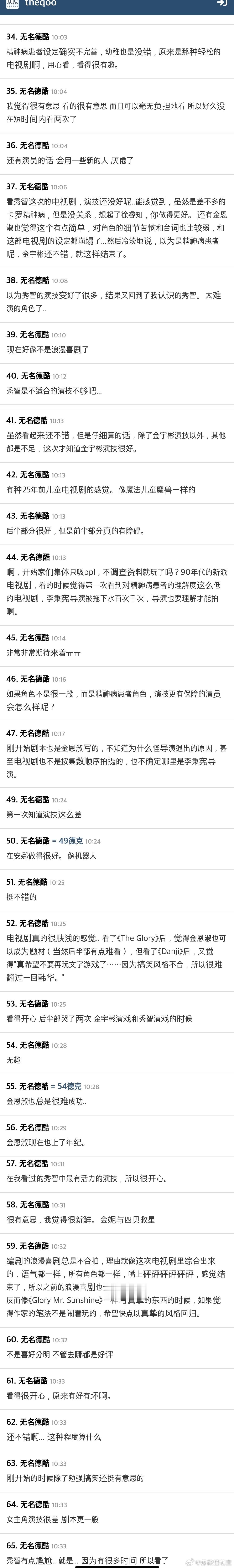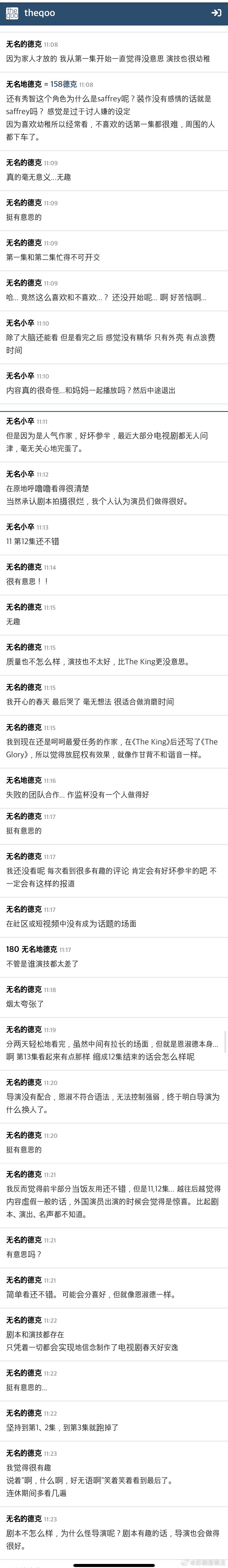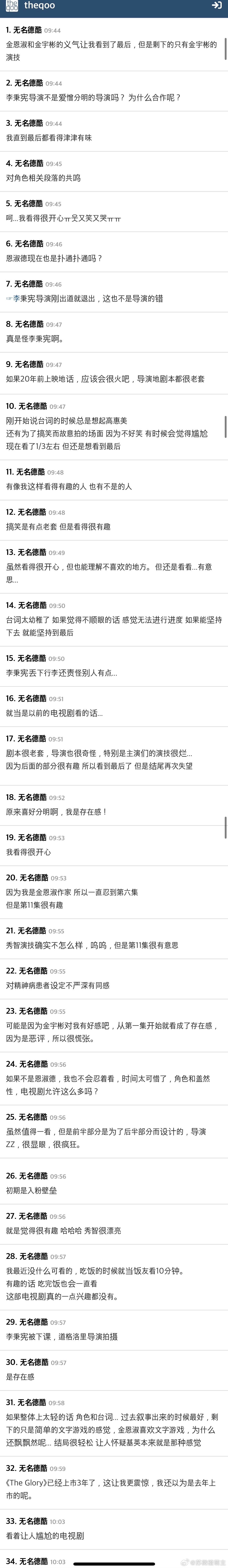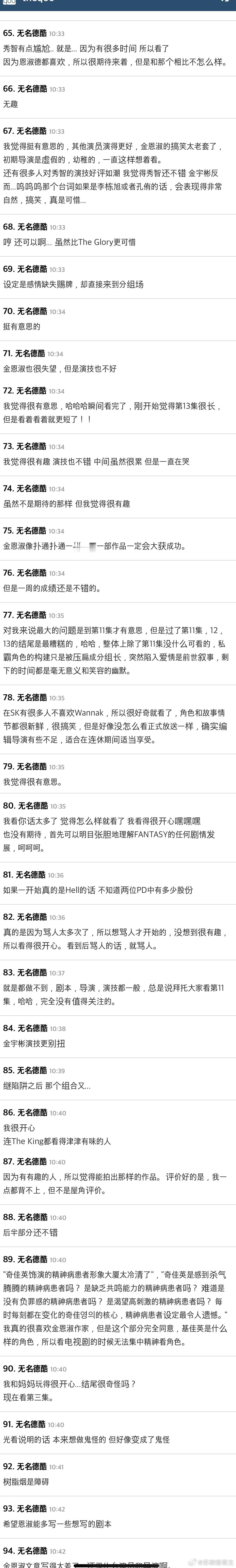另一位观众失望表示:刚与郑瑞京编剧分手,没想到现在又要与金恩淑编剧分手。郑瑞京编剧是Disney+原创剧暴风圈编剧,尽管有全智贤姜栋元超豪华阵容加持,同样被评价未达预期。