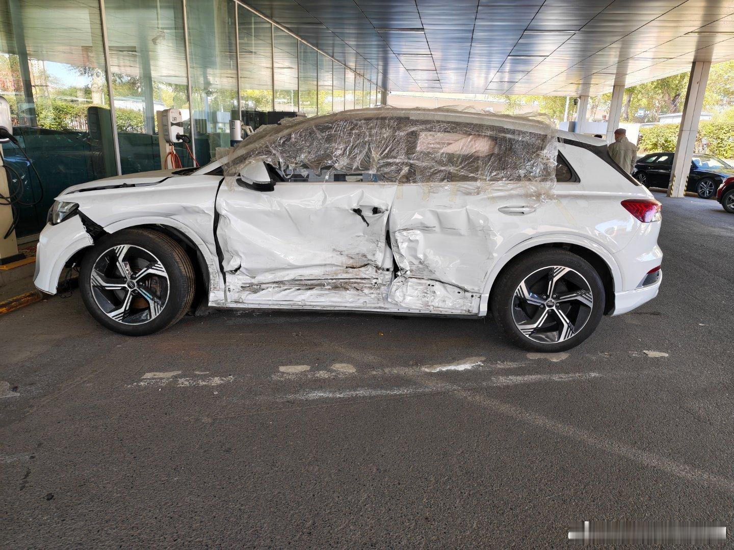 这台奥迪q4e-tron 被接近100时速的侧面撞击(口述,不保真)