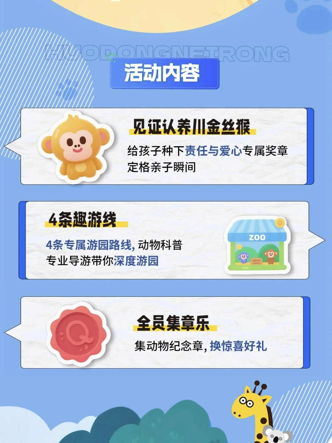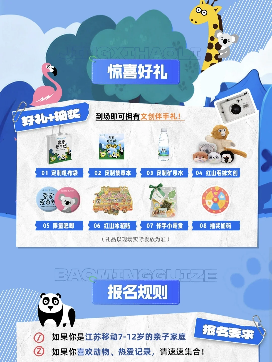 💥报名活动不仅可以免费游玩红山动物园,见证认养金丝猴,还可以领取超多精美伴手礼,感兴趣的可以参与哦~