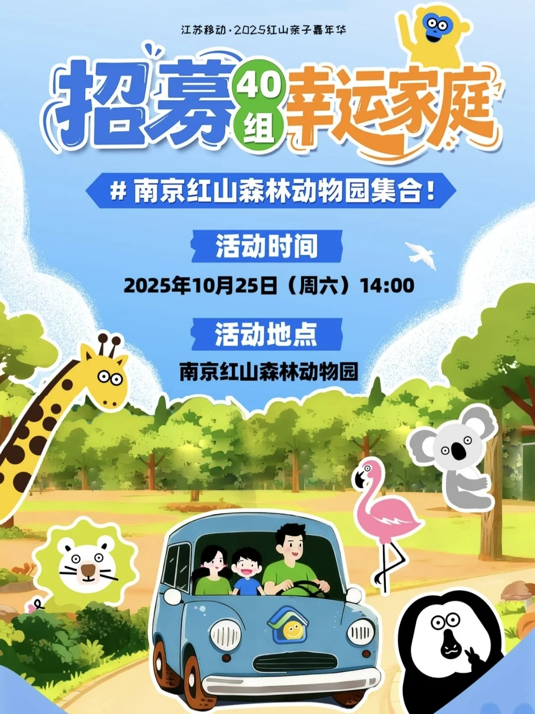 🎫报名要求:江苏移动7-12岁的亲子家庭,按要求发布内容并回传后就有机会获得名额,入选结果主办方将在10.22之前进行通知~