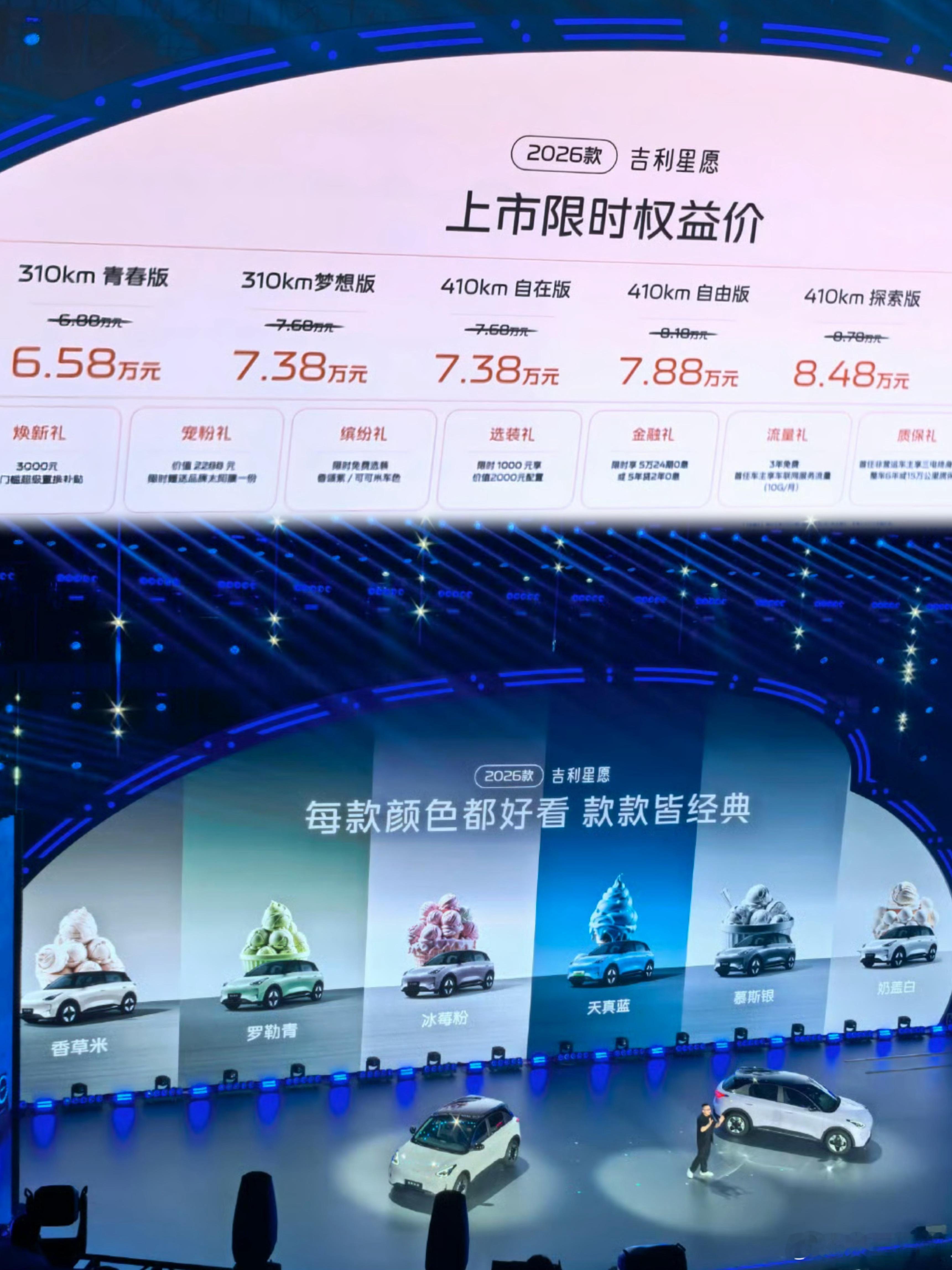 2026款吉利星愿正式上市,限时权益价6.58万元起,原指导价6.88万元起