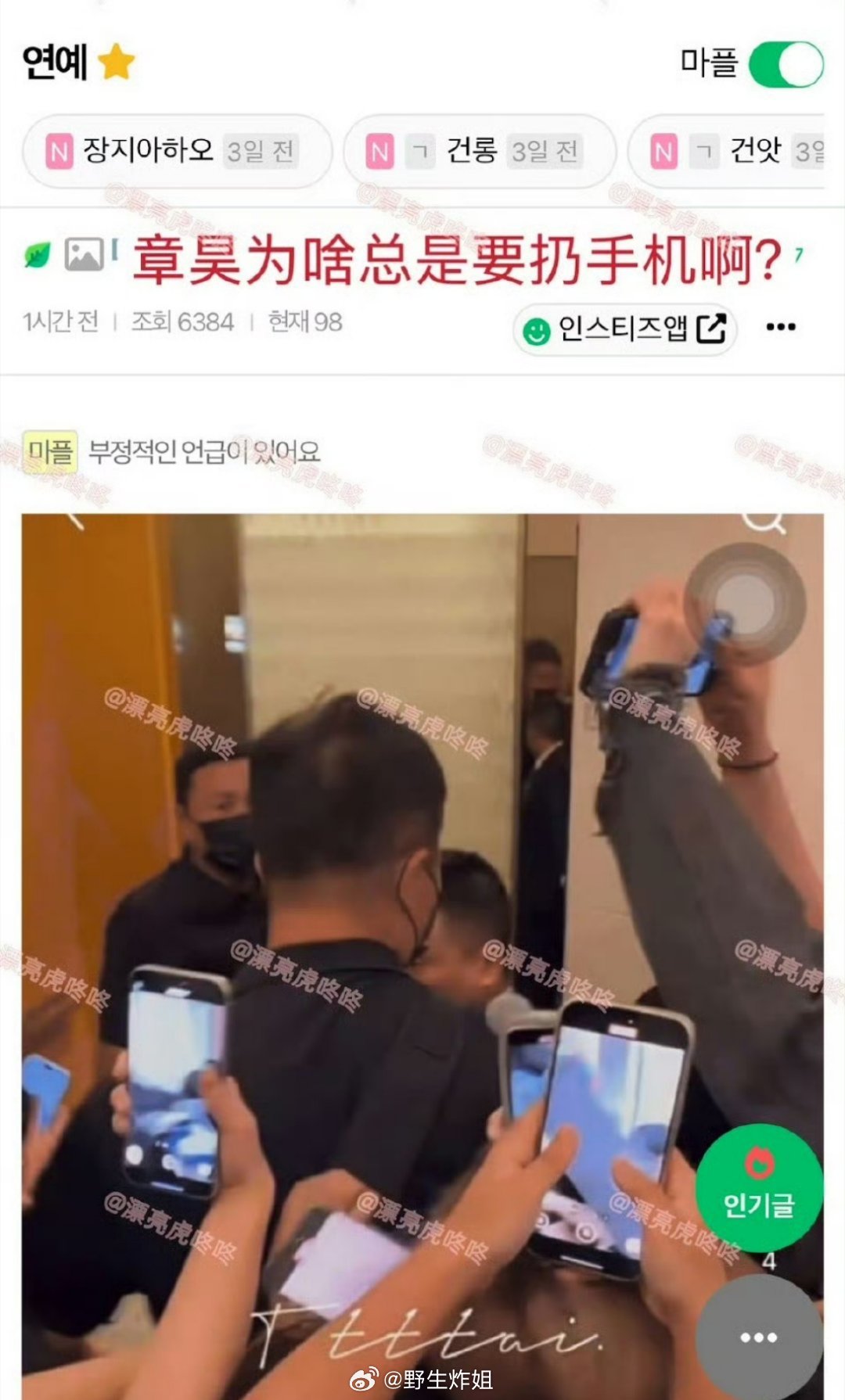 章昊把私生的手机直接打掉了,韩媒那边说章昊太暴力了,动不动就去打人的手机,但这些