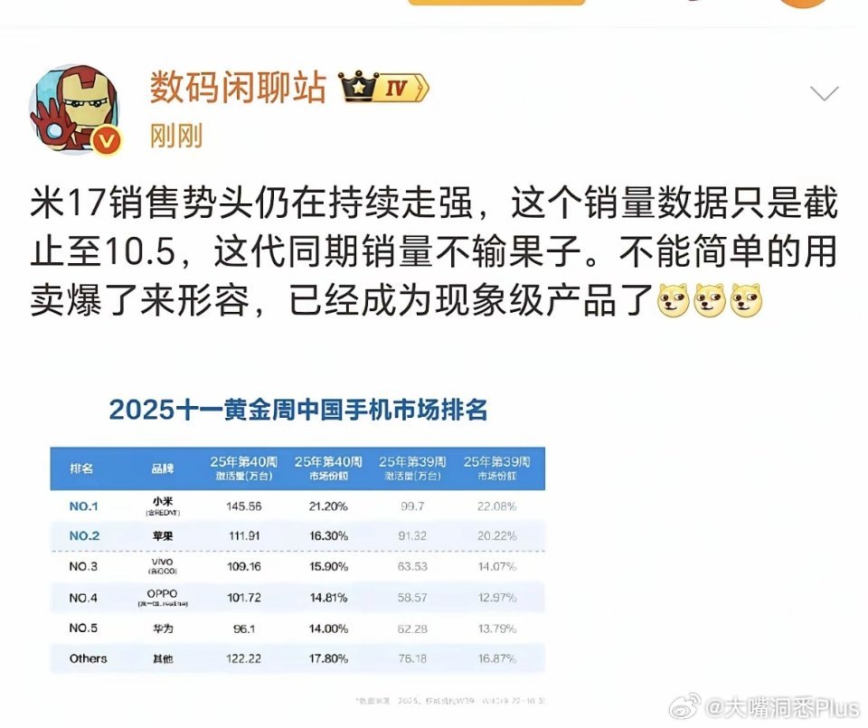 小米17系列已经不能简单的用卖爆了来形容了,同期销量不输苹果,该用“现象级产品”一词来形容!