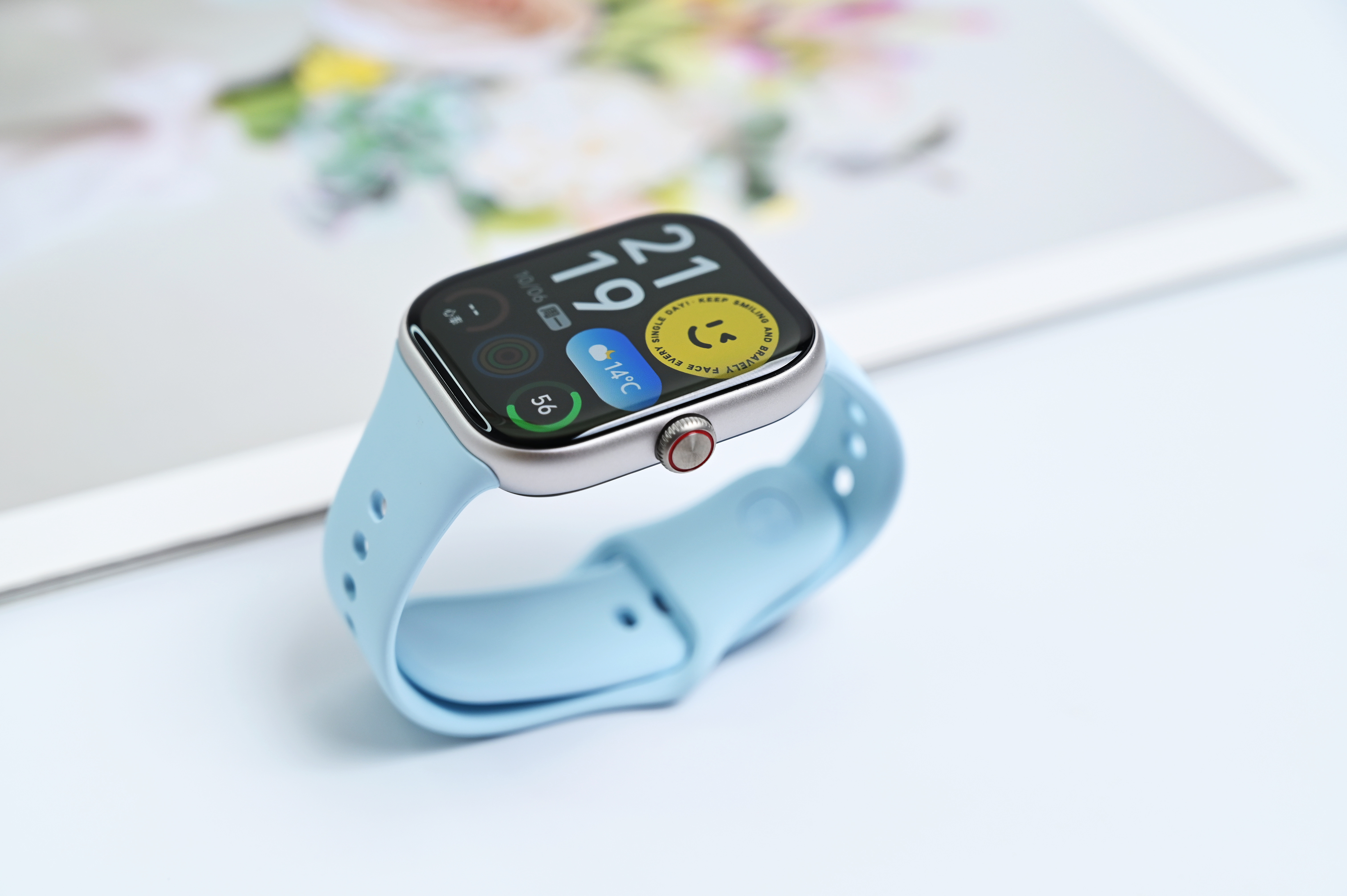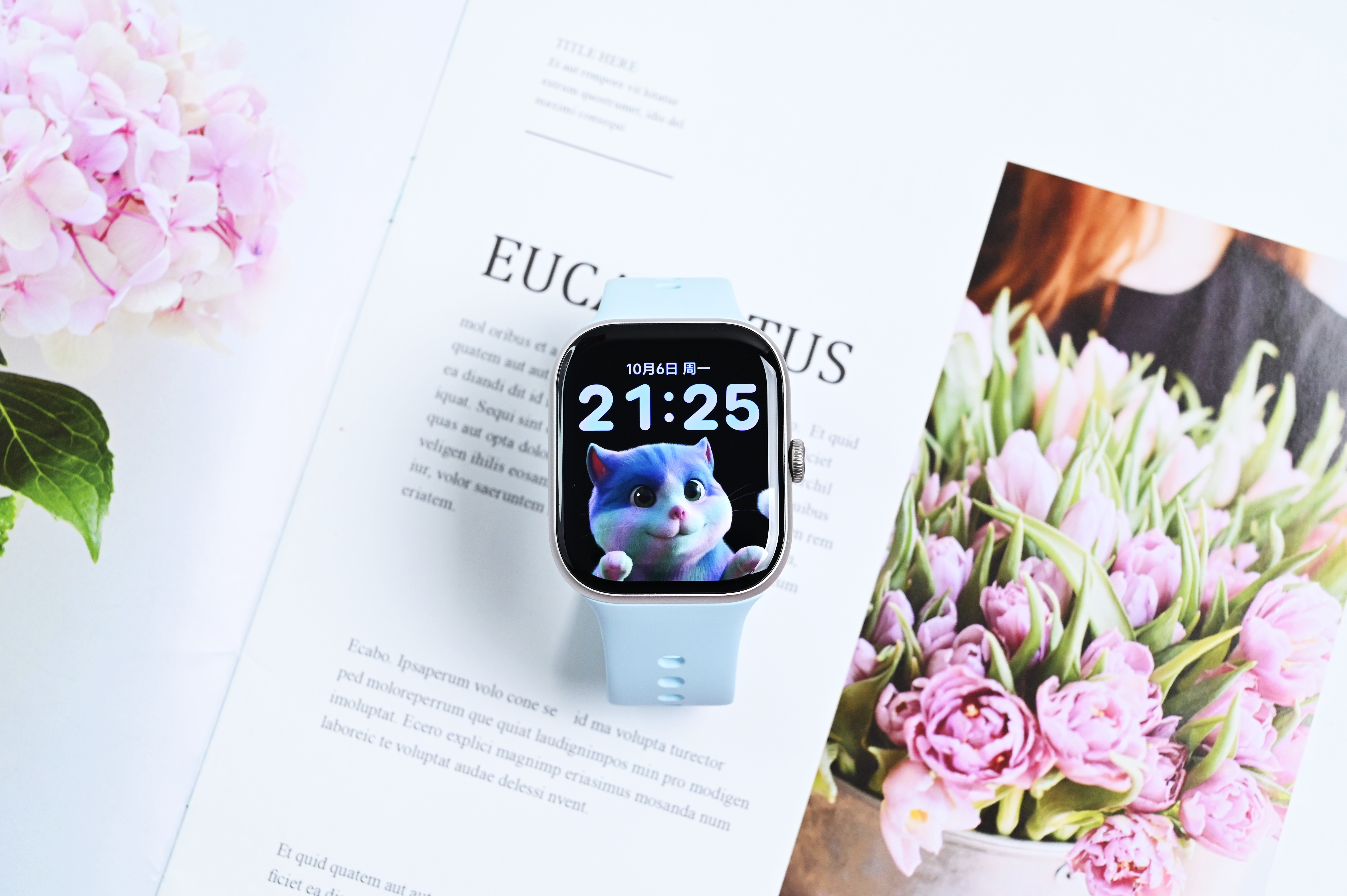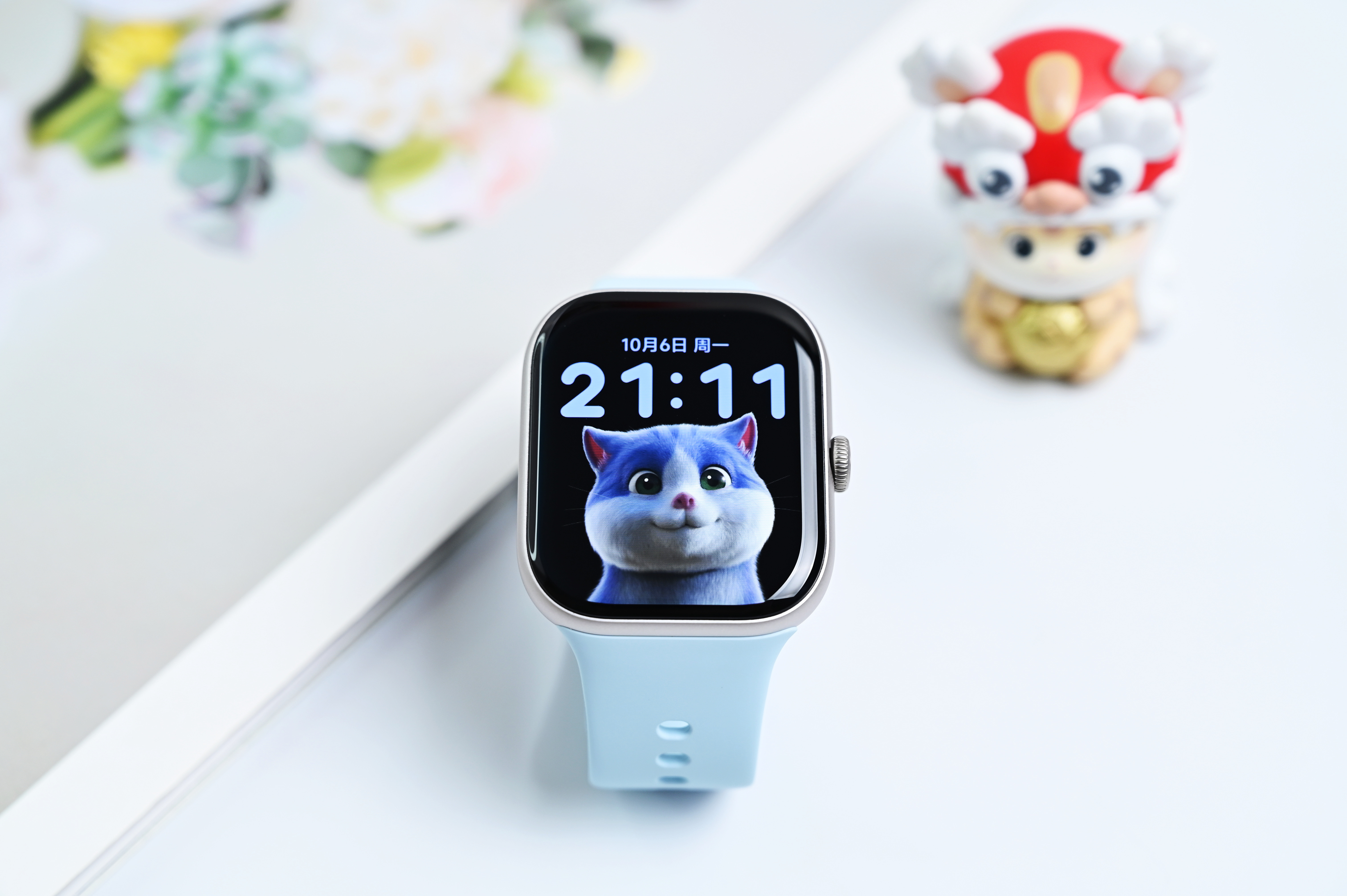 首先是屏幕,2.07 英寸的高亮大屏,屏占比高达82.4%,2400nits 峰值亮度,即便是在户外跑步、骑行,时间天气等信息也都清晰可见,高亮的铝合金中框也非常有质感。照片表盘“一碰即换”也非常有趣,只要手表轻触手机NFC区域,喜欢的照片瞬间变成专属表盘,这个联动有点意思。