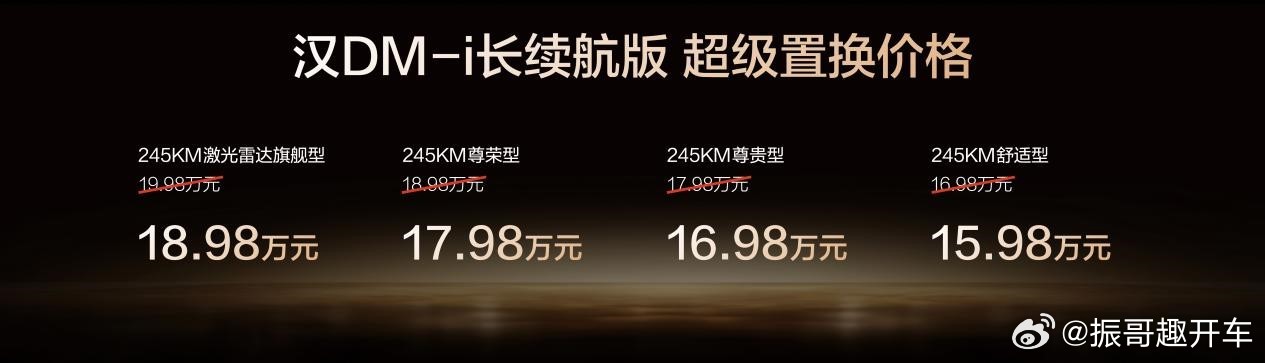 汉DM-i长续航版纯电续航提升至245公里,亏电油耗仅3.44L/100km,汉EV长续航版百公里电耗更低至10.6kW·h。同时新车升级搭载TBC高速爆胎稳行系统、云辇-C智能阻尼车身控制系统等,并带来全新车色、内饰用料与舒享配置全面升级。