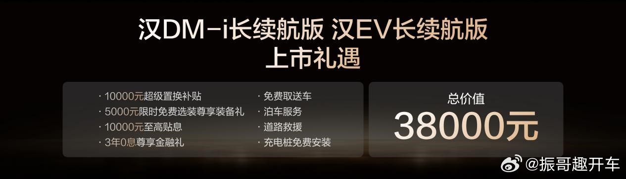 关于价格,这次汉DM-i长续航版共推出4款车型,补贴后售价15.98万~18.98万元;汉EV长续航版共推出3款车型,补贴后售价17.38万~20.58万元(10月31日前完成购车可享1万元超级置换补贴)。同时,比亚迪还为用户准备了包含置换补贴在内的至高价值3.8万元七大礼遇。