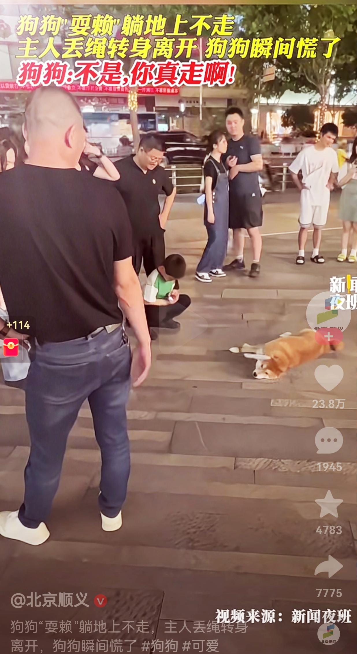 这狗狗成精了!太聪明了,还知道看主人的脸色行事呢?男子出来遛狗,狗狗走的太累了,说什么也不愿意走了! 只见狗狗直接躺在地上,耍起了无赖,一动不动。可是,眼睛正在盯着主人呢? 主人跟狗狗和颜悦色地讲,狗狗就是不听,主打一个不听话。 主人也愤怒了,只见他将绳子一丢,转身就离开了。 狗狗看到主人离开了,瞬间慌了起来,狗狗一下子就起来了,跟着主人就离开了! 围观的人看到狗狗的样子,忍不住大笑了起来。 网友看到后评论说,你看狗狗慌张的样子,那一刻,它真的慌了也顾不上自己的面子了,再不走就成了流浪狗了! 还有的网友说,这毛孩子太聪明了,还知道看脸色行事呢?主人开心,它就开始跟主人耍无赖,主人不开心了,它就开始收好自己的小性子了! 主人心想:跟我玩,你还嫩了点你不是不走吗?我只需要一招,你就乖乖跟我走了!小样,我还治不了你吗? 对此你有什么看法呢?欢迎大家评论区讨论留言。