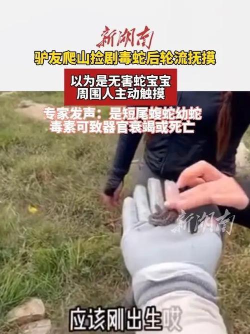 近日,一段驴友爬山捡到幼蛇后轮流抚摸的视频引发关注,经专家鉴定该蛇为短尾蝮蛇幼体