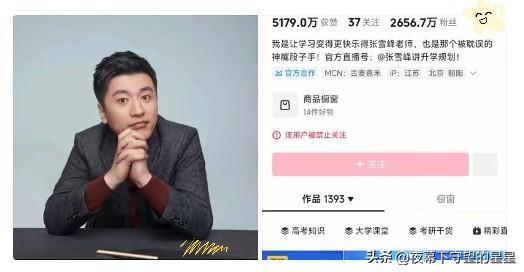 网上一直说张雪峰被封了 今天去看了一下他的账号 不是被封了 账号显示的是该用户被