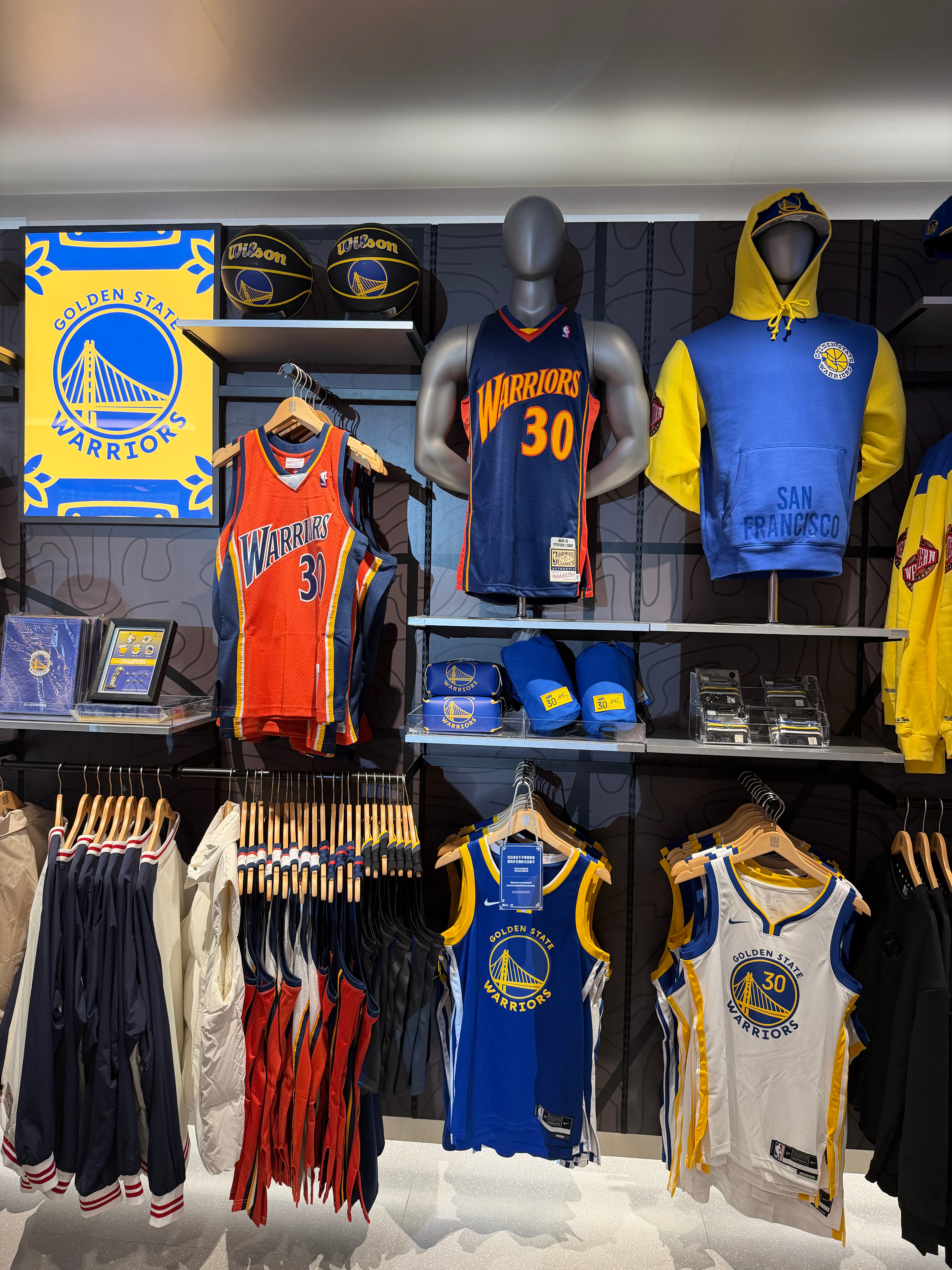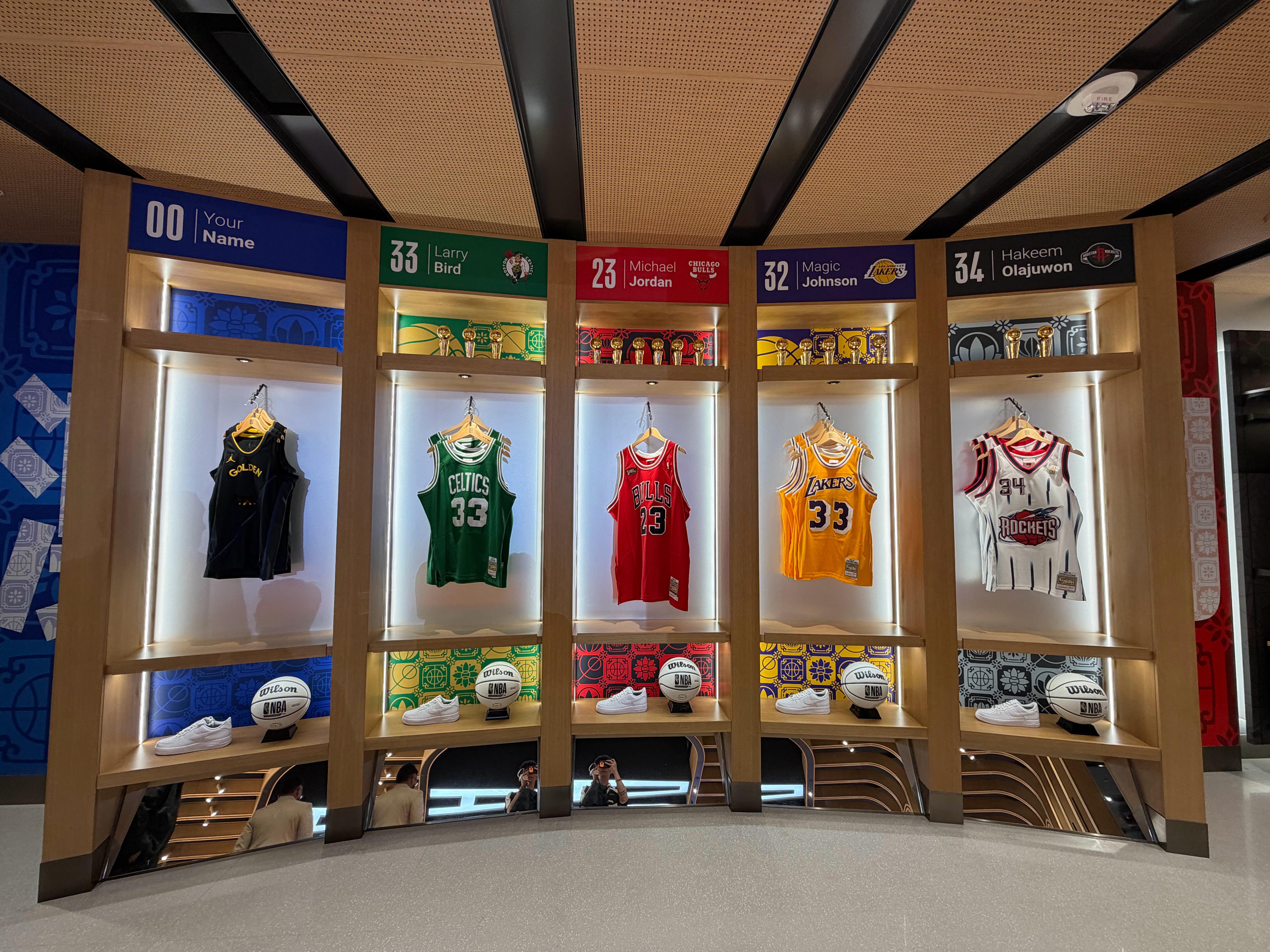 其实这几天已经逛了好几次了,品类非常丰富,经典球衣和新球衣,一些小玩意儿,我那件曾凡博就是在这买的,据说今天还在排长队,还有很多展示区,适合打卡,总冠军奖杯纯金篮球都去拍一拍,体验区运动一下。