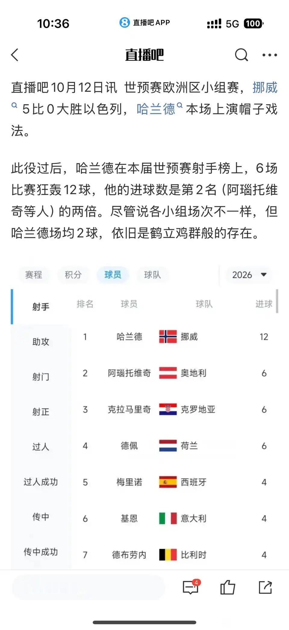 哈兰德在国家队都这么牛,让无数豪门眼馋! 现在世界最强中锋了,毕竟莱万38岁老啦,巴萨正在寻找接班人。 凯恩也30+年龄,过两年差不多,而且在英格兰也没这么厉害。 哈兰德在曼城牛逼就算了,世界杯预选赛还如此霸道,明年世界杯最大期待! 或许他得拿1-2次金球奖。[大金牙]
