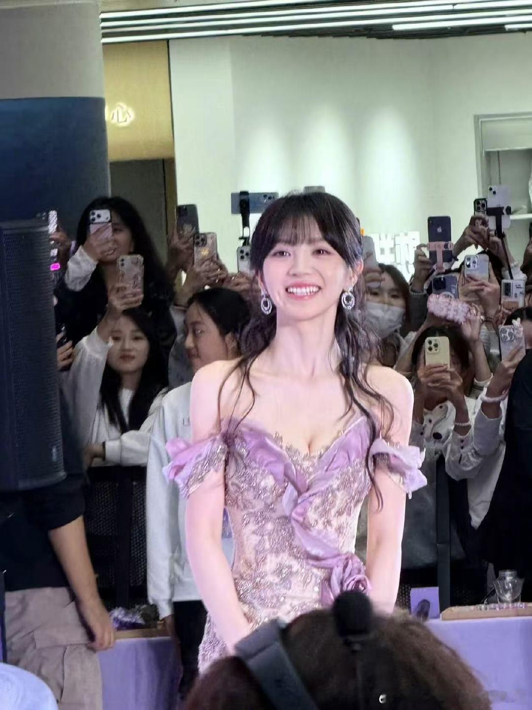 田曦薇紫色一字肩鱼尾裙好美的花仙子小田~鱼尾裙完全展现好身材,太好看啦!