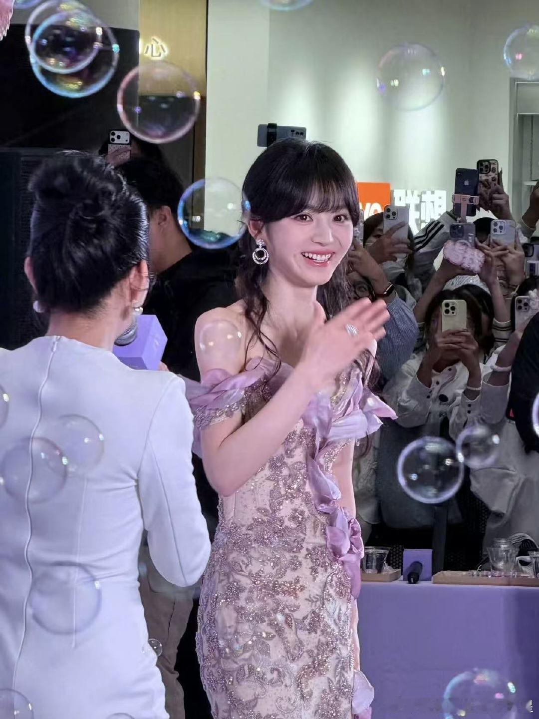 刘亦菲把死亡玫粉穿出了定制款的感觉,这种颜色普通人穿上分分钟黑三度,她居然能穿出