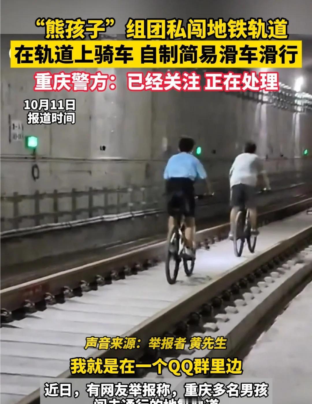 “熊孩子”组团私闯地铁轨道 ,在轨道上汽车,自制简易滑车滑,重庆警方:已经关注 正在处理(封面新闻 )