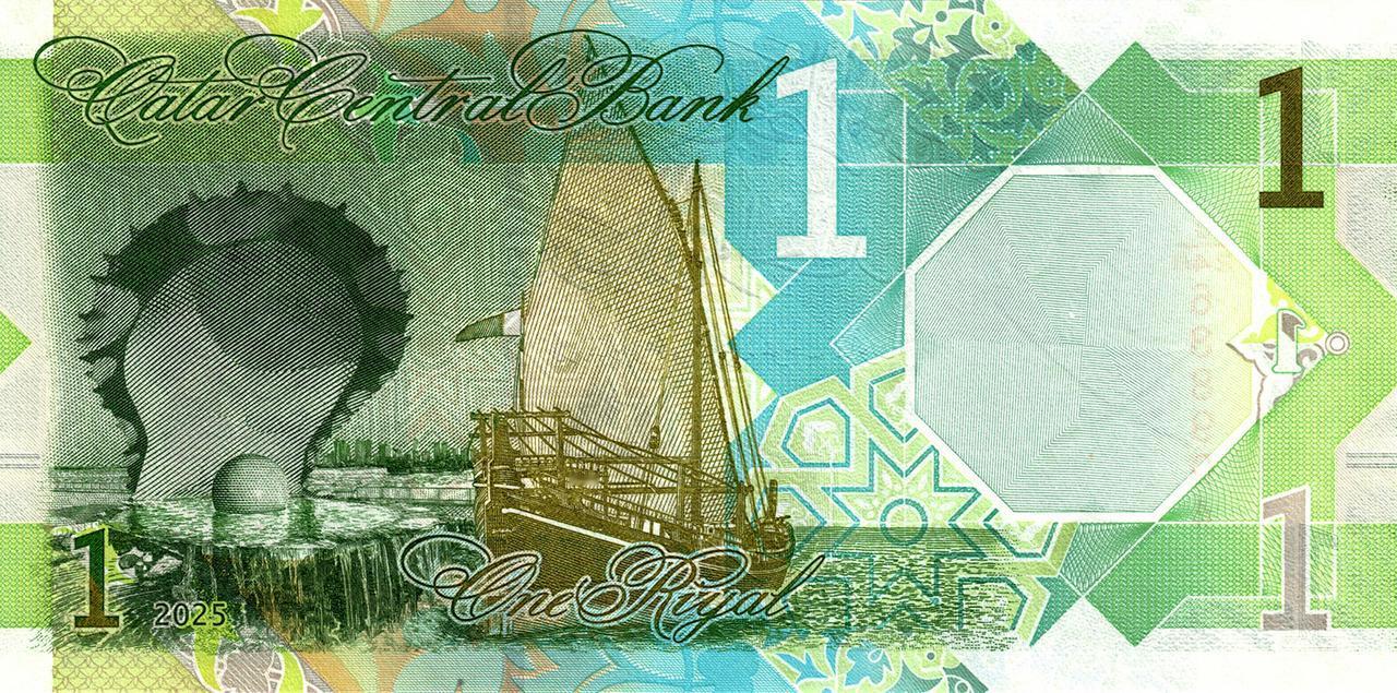 卡塔尔最新版(2025年版)1里亚尔纸币欣赏 该纸币与B219b版相似,但发行日期更新为2025年,同时对开窗式安全线、国徽图案进行了重新设计,且纸币正面左下角面额数字采用西文(而非阿拉伯文)表示。