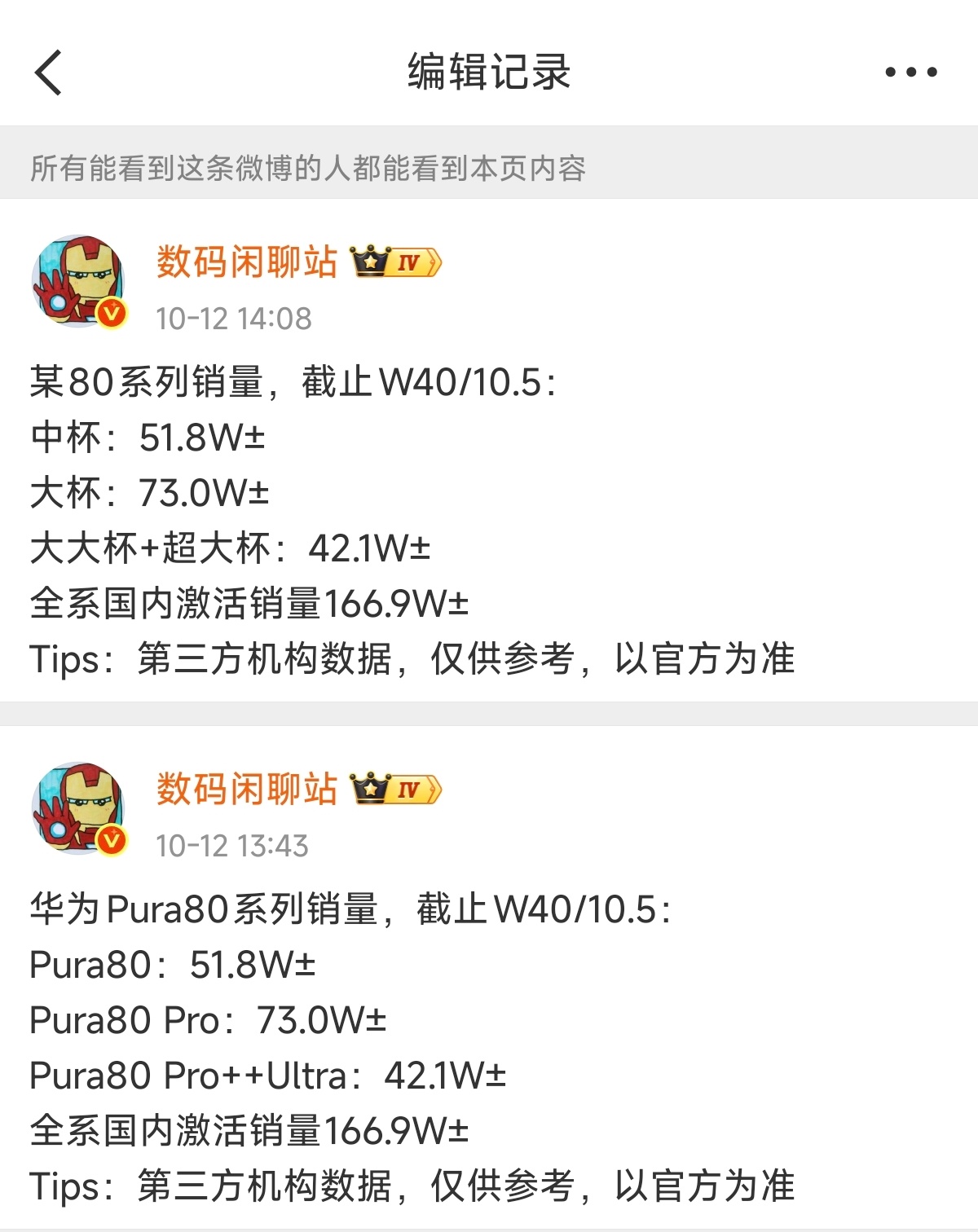 截止 10.5,华为 Pura80系列销量 166.9W。