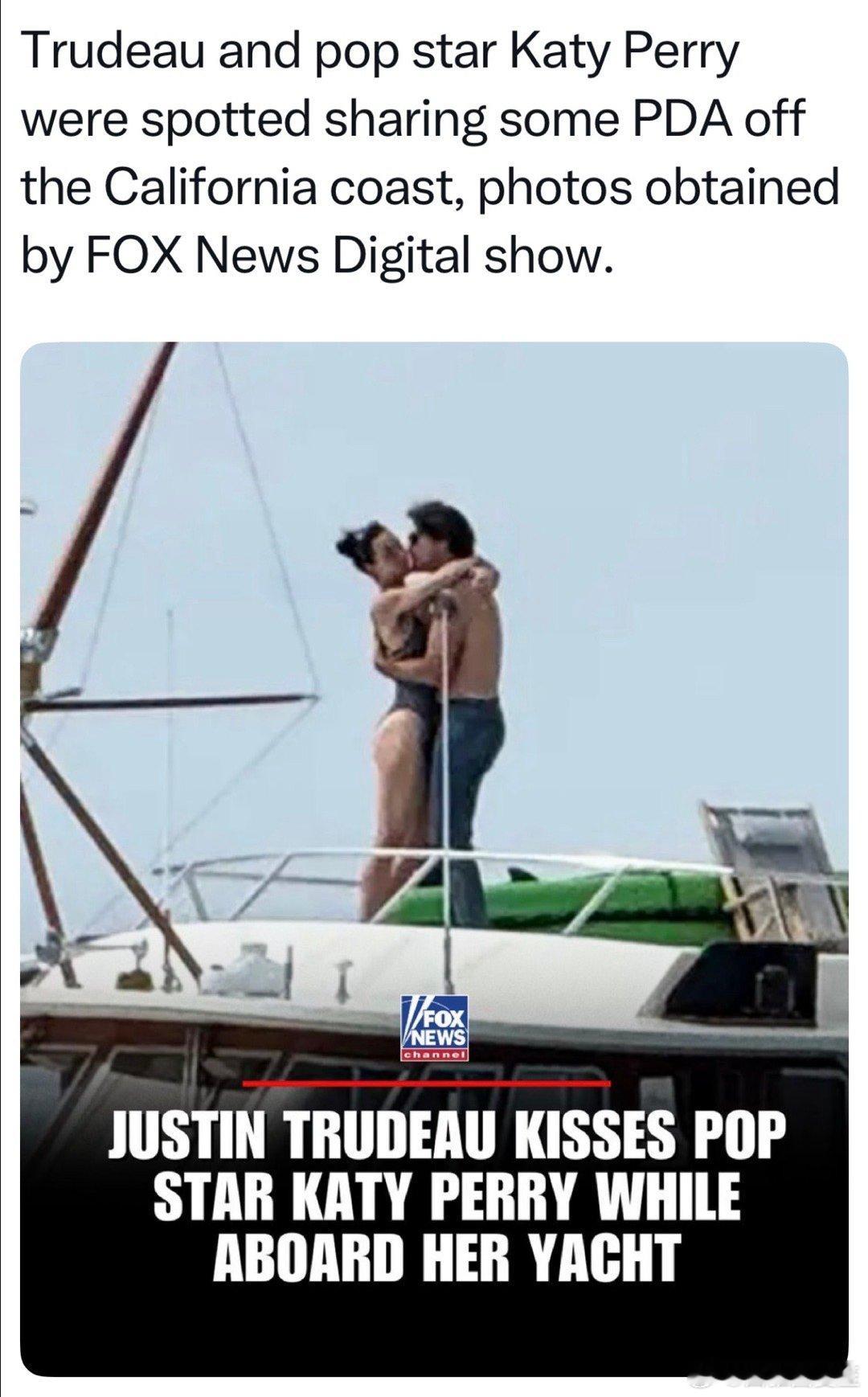 前加拿大总理Trudeau,和美国歌星Katy Perry,在加州、她的游艇上: