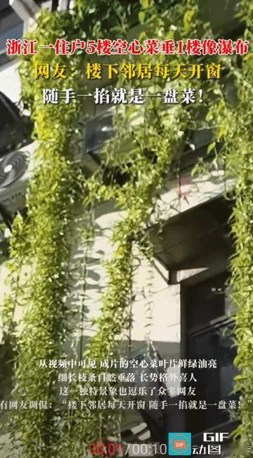 浙江惊现“空心菜瀑布”!5楼垂到1楼,网友:这户人家怕是要吃一整年浙江金华
