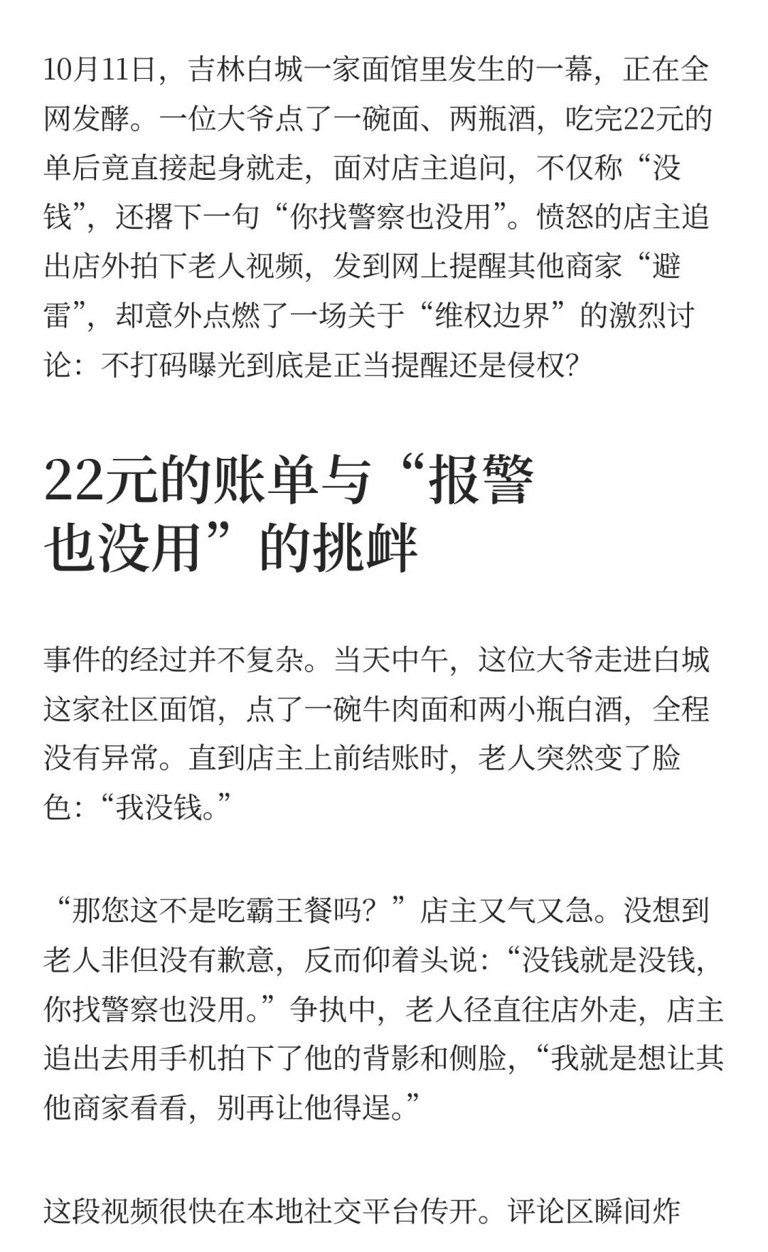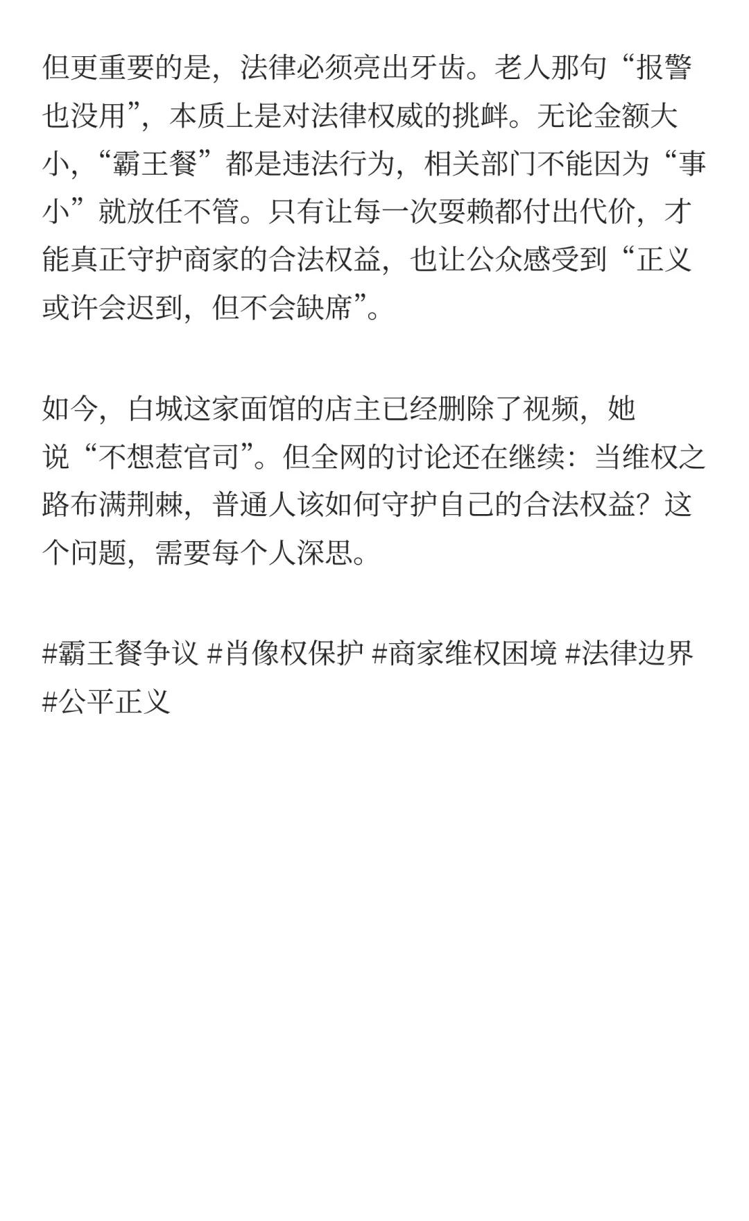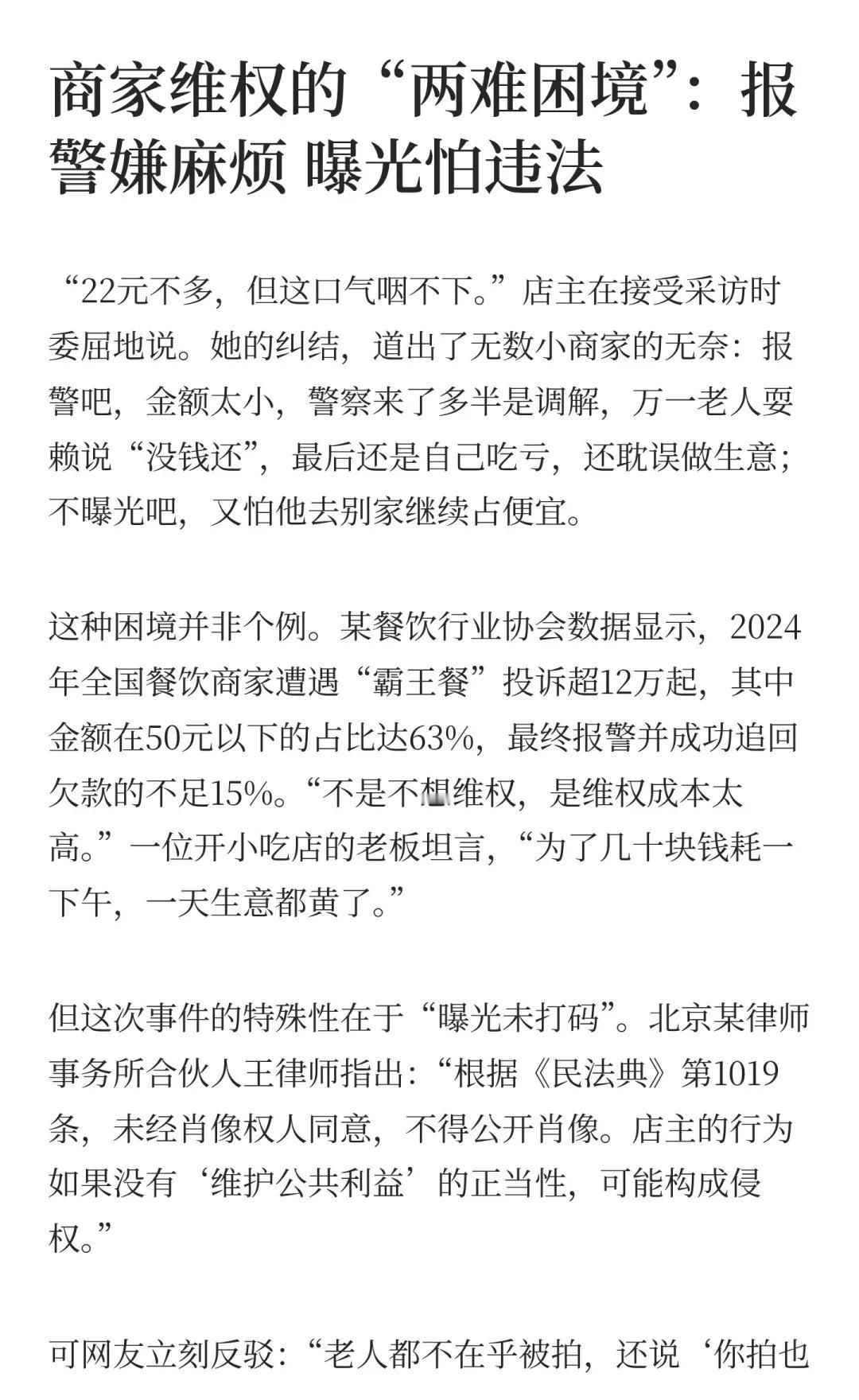 22元霸王餐引发全网争论 店主曝光老人视频 霸王餐争议 肖像权保护 商家维权困境 法律边界