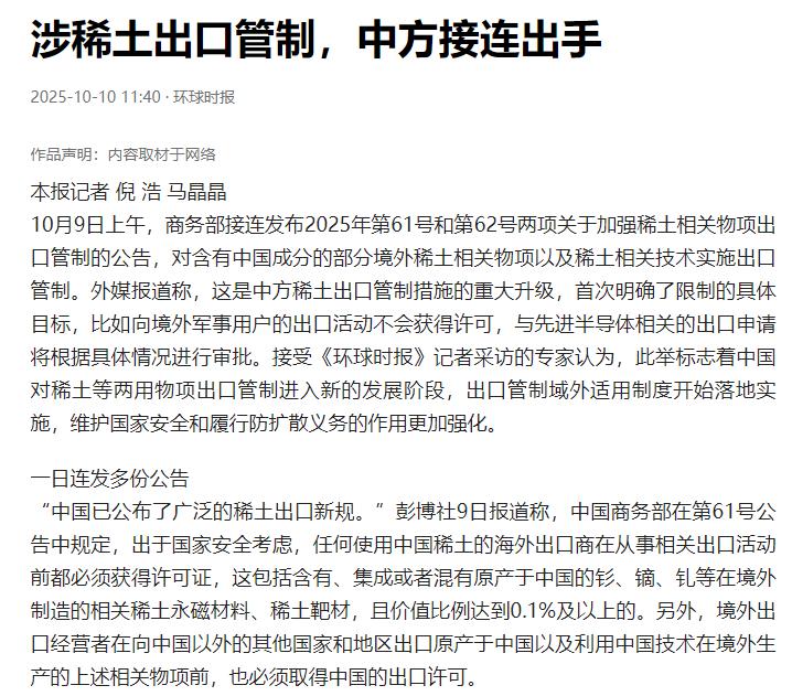 巴铁居然利用中国设备生产稀土卖给美国,中国祭出王牌,所有稀土设备、技术全部出口管制! 麻烦看官老爷们右上角点击一下“关注”,方便您进行讨论和分享,感谢您的支持! 稀土可不是普通矿产,它是现代工业和高科技的基础。从芯片、特种合金到新能源汽车、电动机,再到各种高端电子产品,都离不开稀土。 全球都知道,谁掌握稀土产业链,谁就掌握了技术和供应链的话语权。中国在这方面早就形成了完整的产业链,不光是矿产开采,还有提炼、加工、制造核心材料和设备的能力,这一整套体系,才是别人学不来的。 巴基斯坦这次的做法,其实就像是想靠搬运中国的技术来捞一笔外快。他们手里没有完整的产业链,只靠买设备和技术自己生产,结果卖给美国。 从短期利益看,这笔生意可能让他们赚了一点钱,但从战略高度看,这是赤裸裸的挑战。中国对此的反应,很快也就来了,直接把稀土设备和技术出口管制。 这次行动,有两个信号非常清楚。第一,中国在稀土上的技术和产业链掌控,是不容撼动的。你短期想通过绕开供应链来获利?抱歉,不可能。真正的技术优势和完整产业链,不是靠一台设备或者一套技术就能复制的。 第二,这是给巴基斯坦和美国的警告。你们如果抱着侥幸心理,以为只要买几台设备就能搞稀土出口,那你们低估了中国掌控核心技术的能力和国家维护战略利益的决心。 从这件事也能看到,中国在战略资源管理上越来越强硬。以前可能有人会想,中国出口设备、技术,大家都是合作关系,没必要太严格。但现在的逻辑完全不一样了。 技术和产业链掌控是国家安全的核心组成部分,任何涉及核心资源的环节,都是必须严格掌控的。这不仅是为了经济利益,更是为了战略安全。没有这些核心技术和产业链,一切谈合作、谈贸易都只是纸上谈兵。 有意思的是,这次行动不仅仅是针对巴基斯坦。它同时给全球做了个示范:想绕过中国的供应链?你只能做梦。美国也好,其他国家也好,短期利益再诱人,也改变不了中国掌握稀土产业链的现实。 稀土这种战略资源,一旦核心环节被控制住,任何国家都不得不考虑自己的供应安全和技术依赖问题。这种全链条的控制能力,比单纯的出口量或者价格优势,重要得多。 这件事情还透露了一个趋势,那就是中国在战略资源上越来越注重自主掌控,而不是依赖贸易或者外部合作。 以前大家可能更多关注市场份额和出口额,但现在,真正重要的是技术能力和产业链完整度。 就像这次稀土事件,如果没有对设备和技术的出口管制,短期内巴基斯坦可能会赚点钱,美国可能会得到一些供应,但长远看,中国掌控核心技术的战略优势才是最终决定权。 这种做法,把战略安全和经济利益结合得非常紧密,也让对手明白,想靠短期手段绕过供应链,是不可能成功的。 而且,这次行动的时间点和力度,也非常有针对性。巴基斯坦刚把稀土卖给美国,立刻就收紧出口,显示出中国在战略反应上的敏捷和决心。 不是事后才补救,而是几乎同步压制,让对手没有机会从中获利。这种操作风格,既维护了核心利益,又发出了清晰信号,短期利益和侥幸心理,在战略资源面前,不值一提。 这次对稀土产业链的出口管制,绝不仅仅是一次贸易行为,更是国家战略的体现。它说明了几个关键点,一是掌握核心技术和完整产业链,才是真正的战略优势; 二是短期的绕开供应链行为,最终都无法撼动真正掌控核心资源的一方;三是国家在战略资源管理上的硬实力,才是最有力的威慑。 巴基斯坦想靠中国设备挣钱,美国想通过旁门供应获取稀土,最终都碰了钉子。中国用行动告诉所有人,真正掌握技术和产业链的人,才有主动权和话语权。 技术优势和产业链掌控,不是说说而已,也不是市场交易能轻易买到的,这是决定一个国家战略安全和全球竞争地位的核心。 短期利益可以吸引眼球,但真正决定胜负的,是长远的技术和产业链掌控。中国这一次出口管制,不光守住了稀土产业链,也守住了战略主动权。 巴基斯坦和美国的幻想被打破,中国的底牌亮出来了,谁掌握核心技术,谁就掌握话语权。任何想绕过这条链条的人,最终都得承认现实,真正的战略优势,来自于技术和产业链的绝对掌控。 信源:环球时报报道