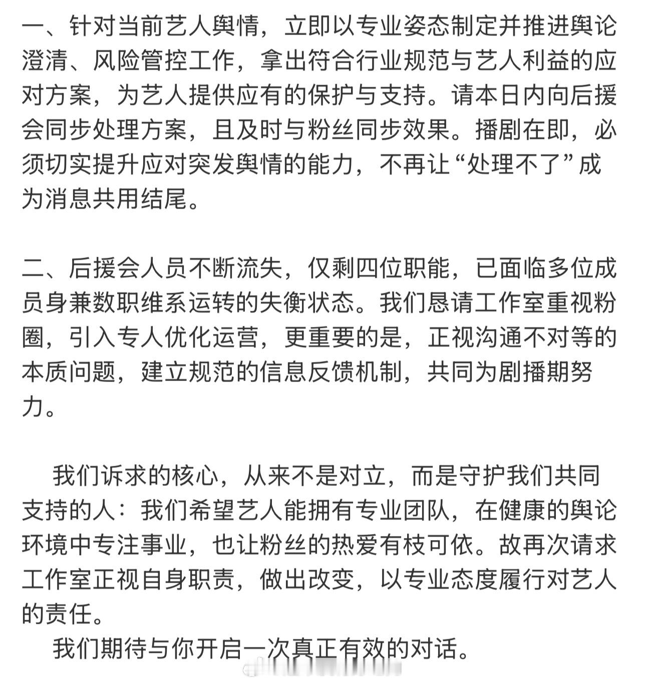 李一桐后援会喊话工作室,能回应吗