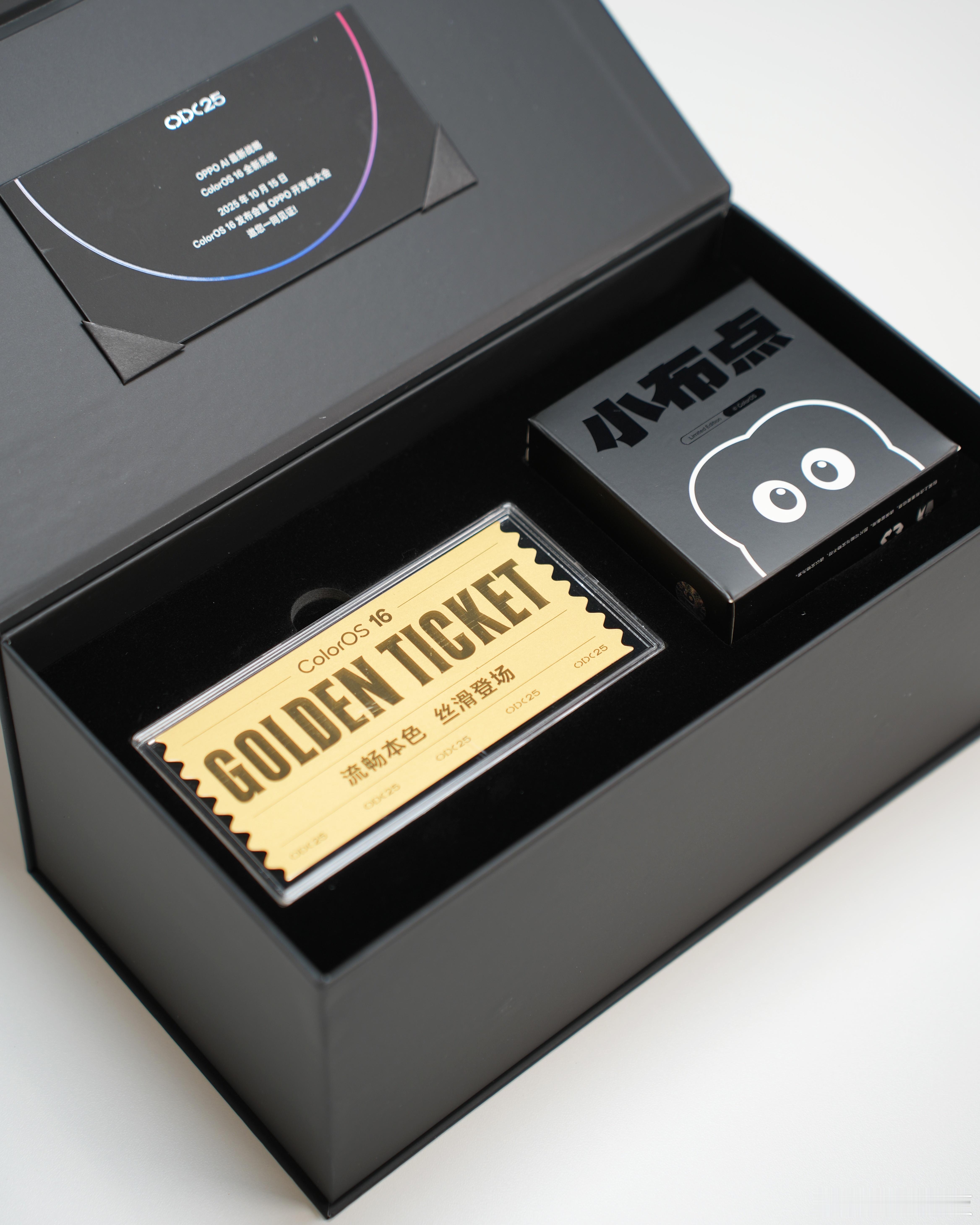 收到了ColorOS16发布会暨OPPO开发者大会的邀请函啦,绿厂用心了啊,里面居然有一个定制牛丸科技铭牌的OPPO小布点毛绒挂件,基于小布助手APP的拟人化设计,很可爱哦!看到还有一块纪念金票么?用0.1g纯金打造哦!德芙+金票,ColorOS 16必将带来更流畅的极致新感受!机圈德芙 流畅丝滑话不多说,一起期待后天活动,共同见证OPPO全新系统ColorOS 16和OPPO AI最新战略![点赞]ColorOS16全面流畅