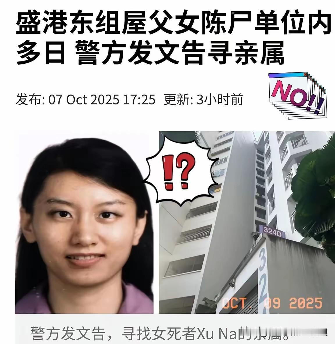 新加坡发生一起悲剧,一家三口来自东北,移民新加坡多年,住在组屋。父母都是高知,女儿在新加坡名校就读,曾是学霸,拥有剑桥博士学位,但后来精神失常,生活不能自理。 谁能想到,一个拿过剑桥博士学位的学霸,最后会倒在组屋的门边,身边是已经白骨化的父亲。这起案子真正让人难受的,是它根本不是突然发生的灾难,而是一点一点、无人知晓地滑向终点的。父亲七十多岁,本身就需要照顾,却还要撑着照料精神失常的女儿。女儿徐娜,曾经是全家希望所在,名校毕业、智力顶尖,最终却连自己都照顾不了。邻居说,经常听到屋里传来争吵和哭声,但没人真的推开门问一句“需要帮忙吗”。 这根本不是谁的“家事”,而是一个关于体面、尊严和孤立无援的残酷样本。这一家是典型的高知移民家庭,父母受过良好教育、女儿更是学业出色——他们可能一生都在努力维持一种“没问题”的形象。可问题往往就出在这:越是要强的人,越难开口求助。尤其在一些重视“面子”的华人家庭中,承认自己处境艰难,有时比艰难本身更难以接受。 社区支持系统也暴露出它的脆弱。组屋虽然人群密集,但邻里关系淡漠,人与人之间保持着礼貌而疏远的距离。血水从天花板渗到楼下,邻居先感到的是困扰和异味,而非警觉。如果有人早一点意识到异常、早一点报警,结局会不会不一样?但我们没法责怪邻居,现代社会谁不是关起门来过自己的日子? 真正值得反思的是,一个社会如何对待那些“跌出轨道”的人。徐娜曾符合所有“成功”标准:名校、高学历、移民家庭……但她病了,她就从光环中坠落,连带着整个家庭一同沉默地下沉。我们总是赞美成功者,却很少构建一张能接住失败者、脆弱者的网。精神疾病、老年照顾、移民压力——这些问题都不是孤立的,它们交织在一起,却往往被忽略,直到悲剧见报。 这桩悲剧之所以引发广泛关注,是因为它太具体、太真实了。它撕开了光鲜表象背后的无言困境。高知家庭、学霸神话、移民梦想……所有这些标签,在生命最基本的脆弱面前,毫无意义。 各位读者你们怎么看?欢迎在评论区讨论。
