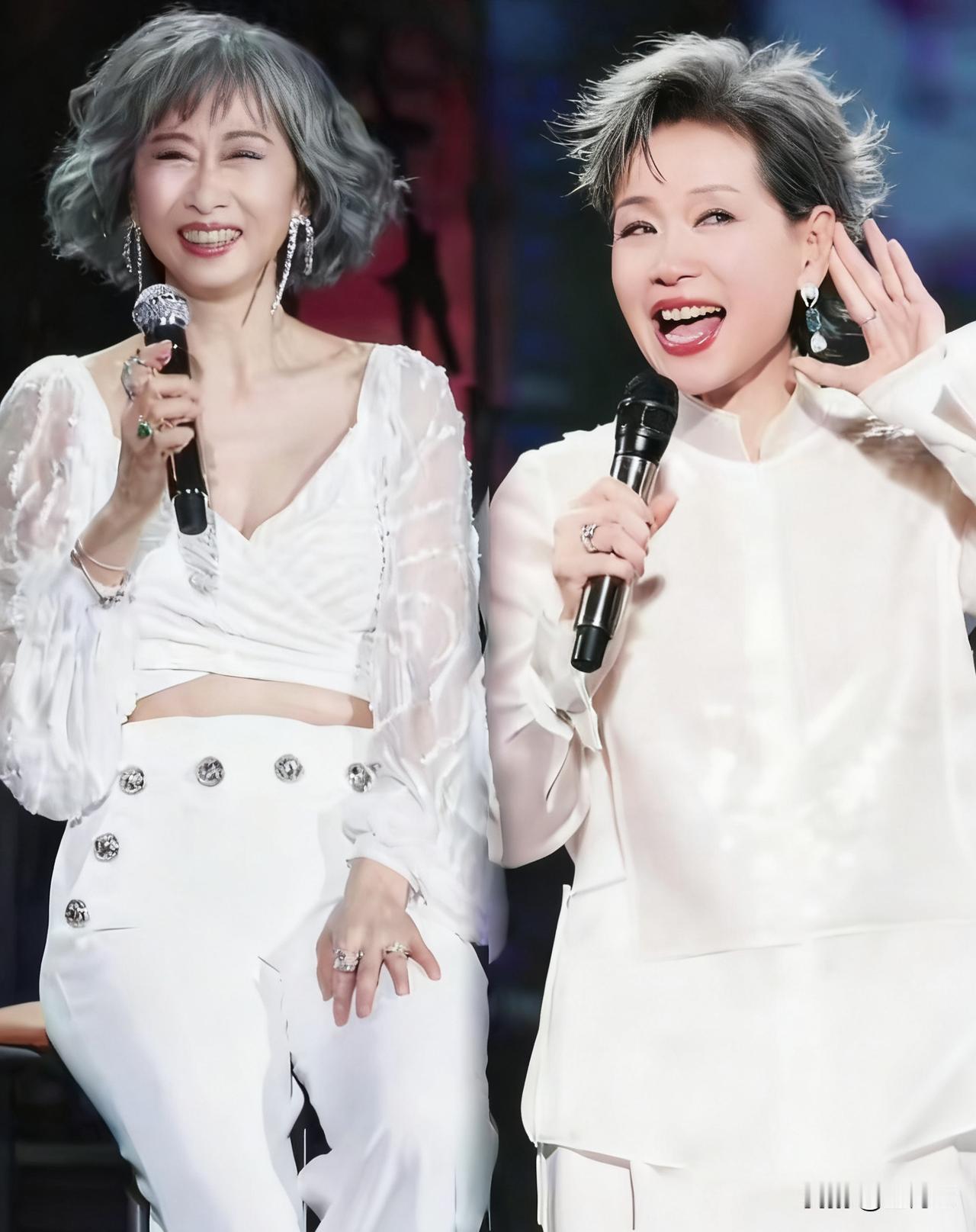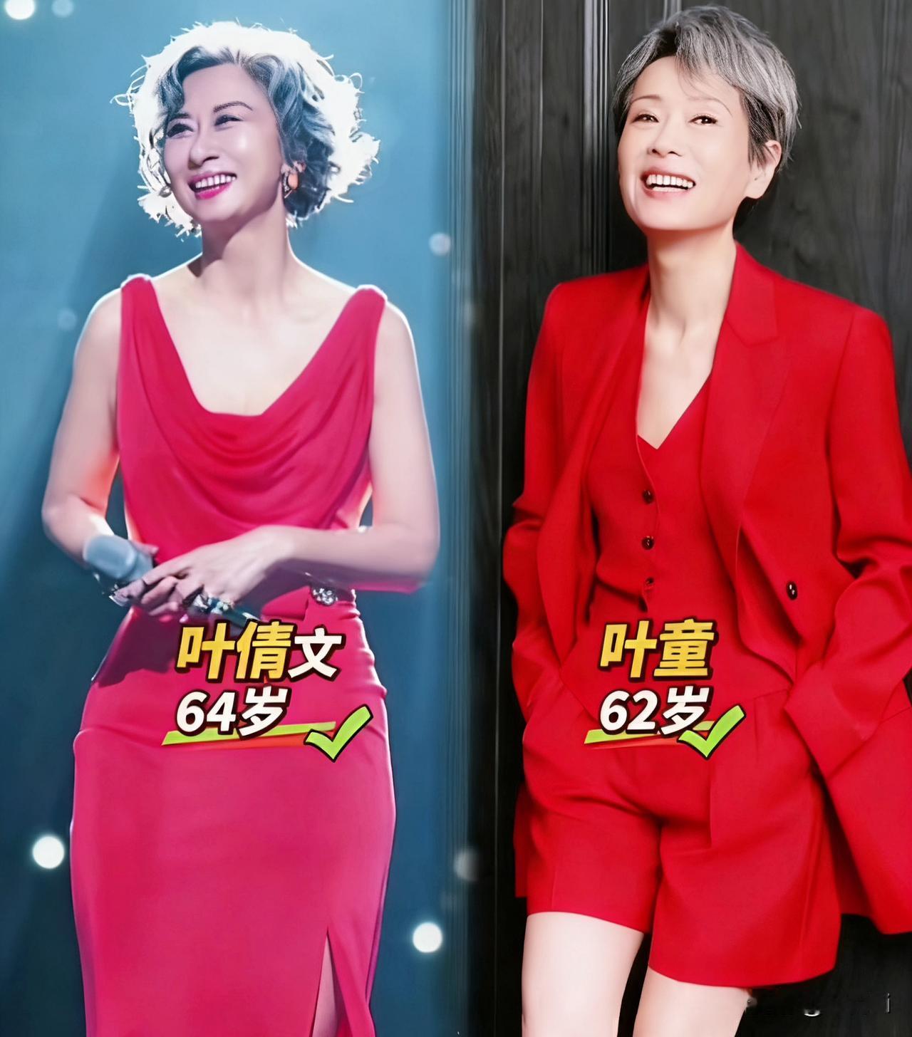 60+叶氏姐妹:岁月从不败鲜活的灵魂 当叶蒨文笑眼裹着舞台的光,叶童短发里浸着少年气——谁能信,这是走过一甲子的人? 她们从没困在“奶奶辈”的标签里:穿露腰裙、踩细高跟,握话筒时眼里燃着热,笑起来是松弛的甜。 我们怕老,怕的是被年龄捆成“该有的样子”。可她们把60岁活成了人生的第二春:不硬装嫩,不怯年龄,只是坦荡地美、自在地活。 原来“不老”从不是脸上无纹,是眼底有光,是敢把岁月熬成底气。这哪是“冻龄”?是她们把日子,过成了自带锋芒的诗啊。