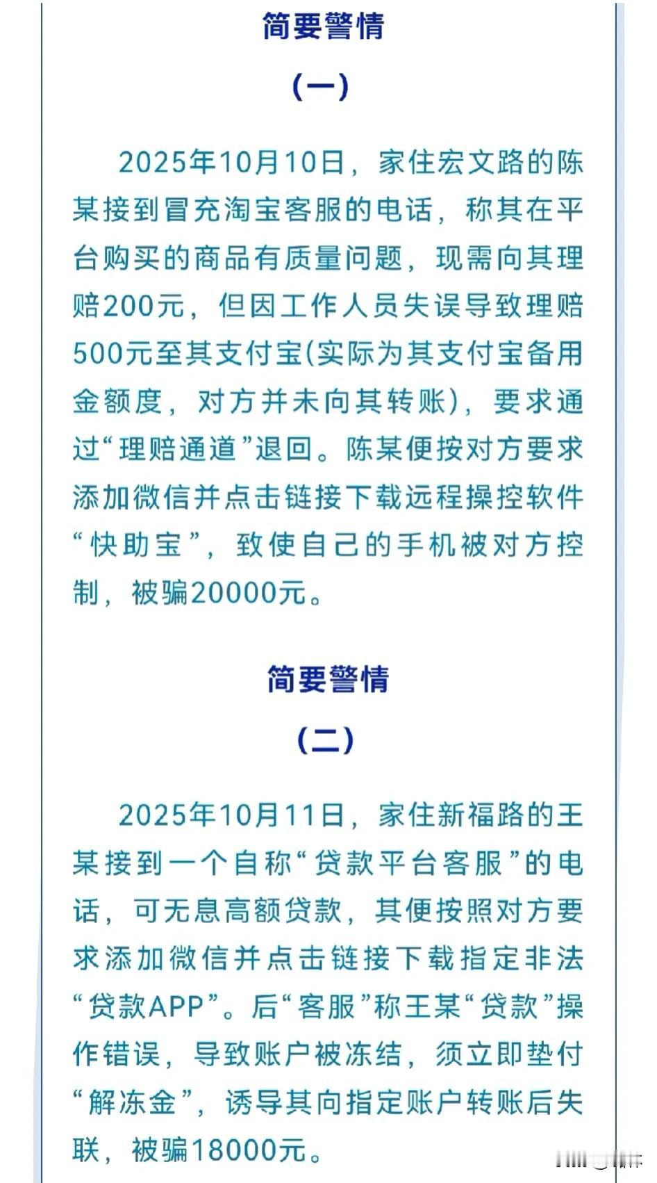 近日,宝鸡市公安局金台分局发布反诈典型警情提示,2人分别被电信诈骗了20000元