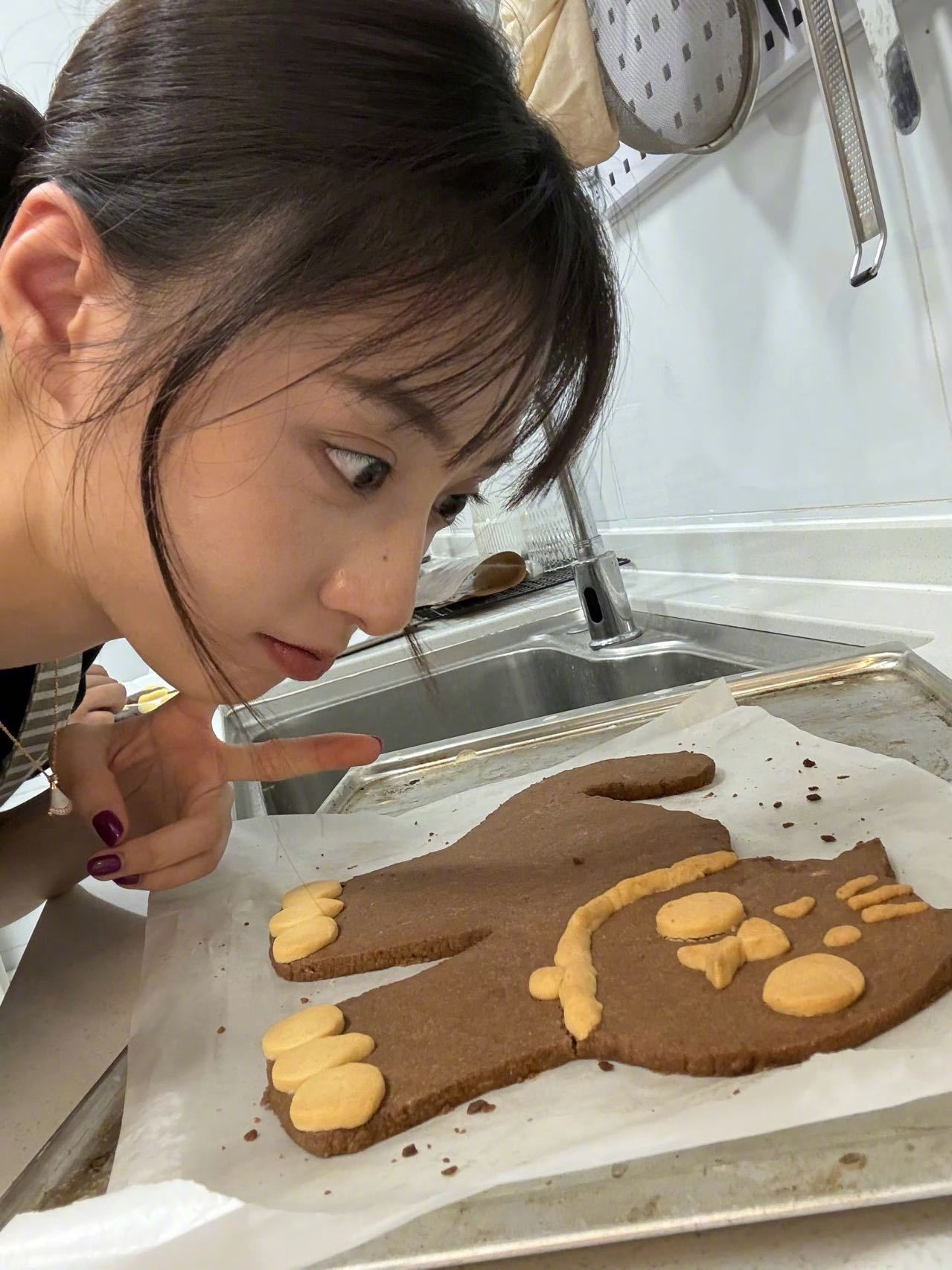 胡连馨也闯进烘焙赛道了 美女的隐藏技能点被发现啦!小胡做饼干好松弛感,没有刻意凹造型,只是认真揉面、耐心等待出炉,这种真实感比饼干还甜~