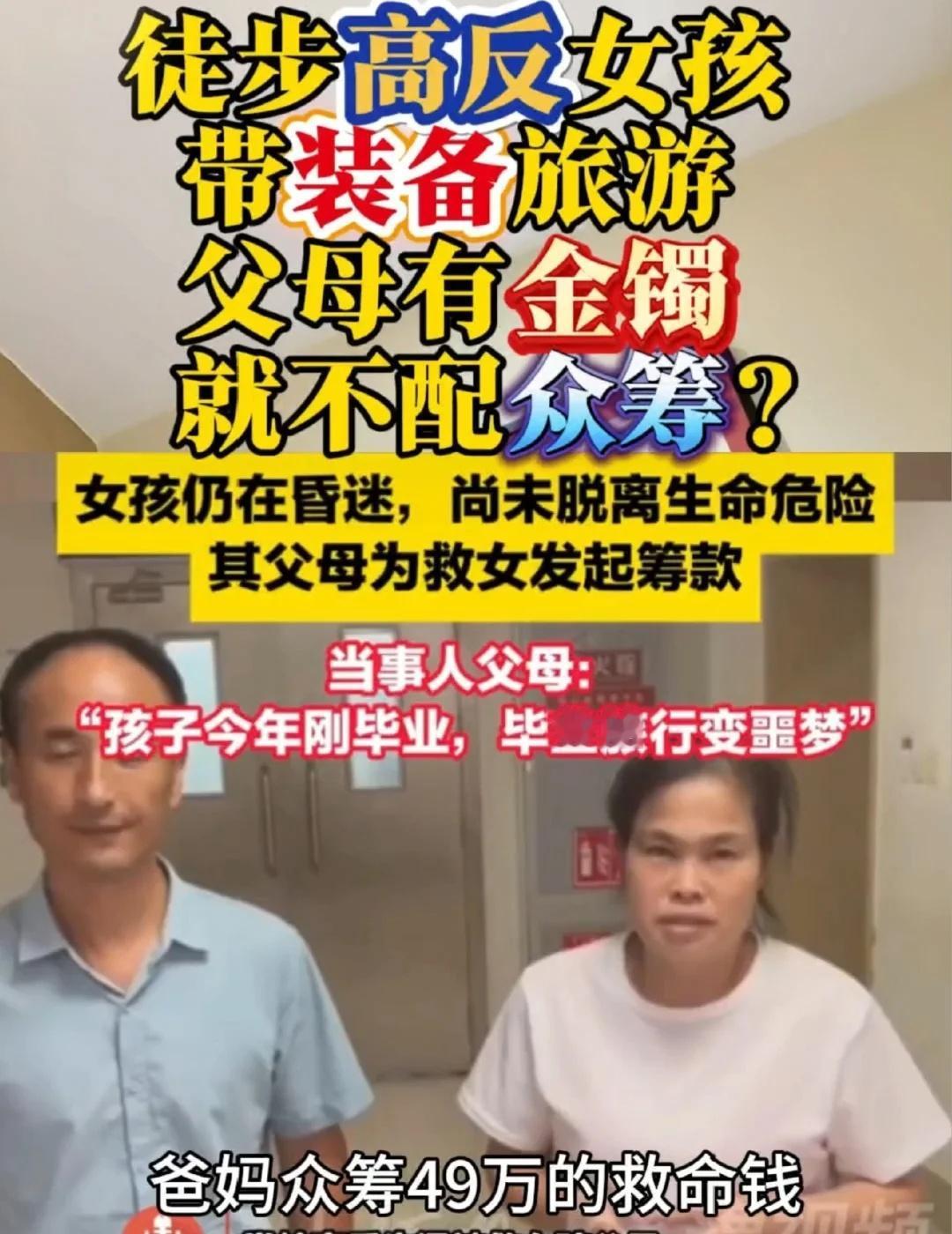 徒步高反女孩,带装备旅游,父母有金镯,就不配众筹么?高反失温女孩母亲回应筹款争议