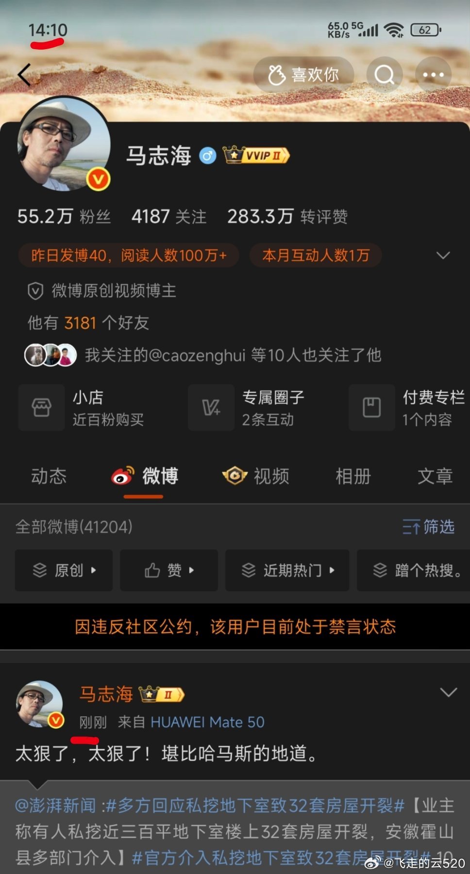 刚刚还在发微博,现在被禁言了
