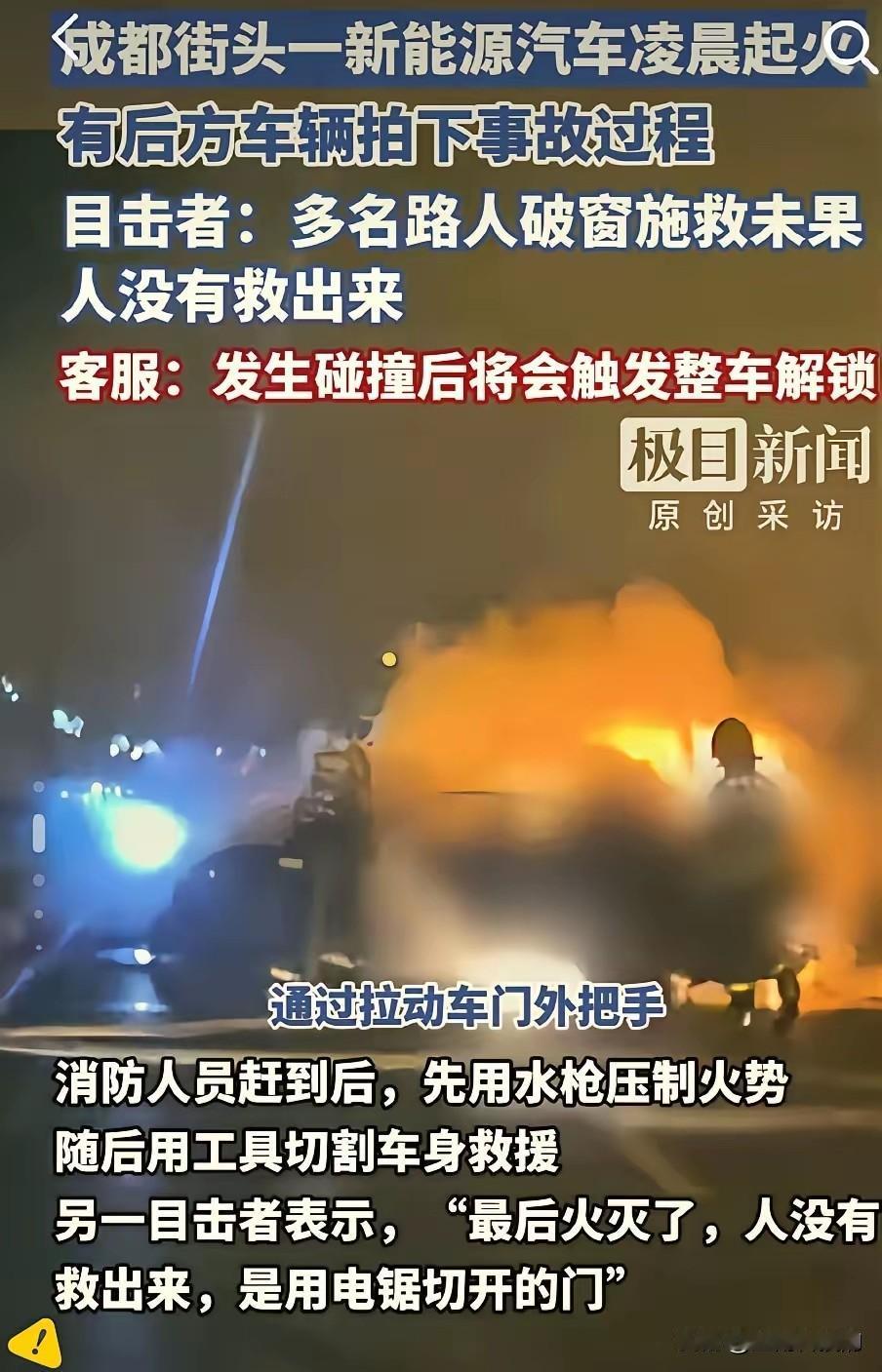 真的吓出一身冷汗!看到凌晨成都的这起车祸,我默默做了3个决定: 第一,立刻买安全锤。 以前总觉得这种事离自己很远,现在才知道意外说来就来。已经下单了两个,驾驶座旁边放一个,后排车门也备一个。钱不多,但关键时候能救命。 第二,养成上车就解锁所有车门的习惯。 以前总觉得锁着车门安全,现在明白了,真出事时每一秒都是生机。从今天起,只要车子启动,第一件事就是解锁全车车门。 第三,紧急情况果断砸窗。 真遇到车门打不开,绝不犹豫,在生命面前什么都不值一提。 说真的,车祸这事儿看着离我们远,可谁也说不准意外啥时候来。这些小事看着麻烦,真到关键时候可能就是保命的。安全不能靠侥幸,准备不能等明天。转发提醒身边人,多一分准备,少一分危险。