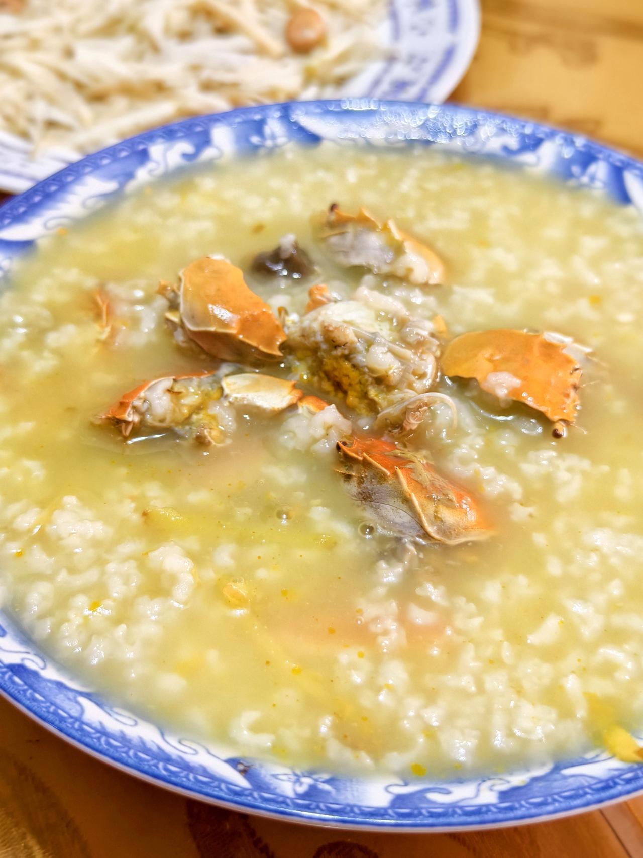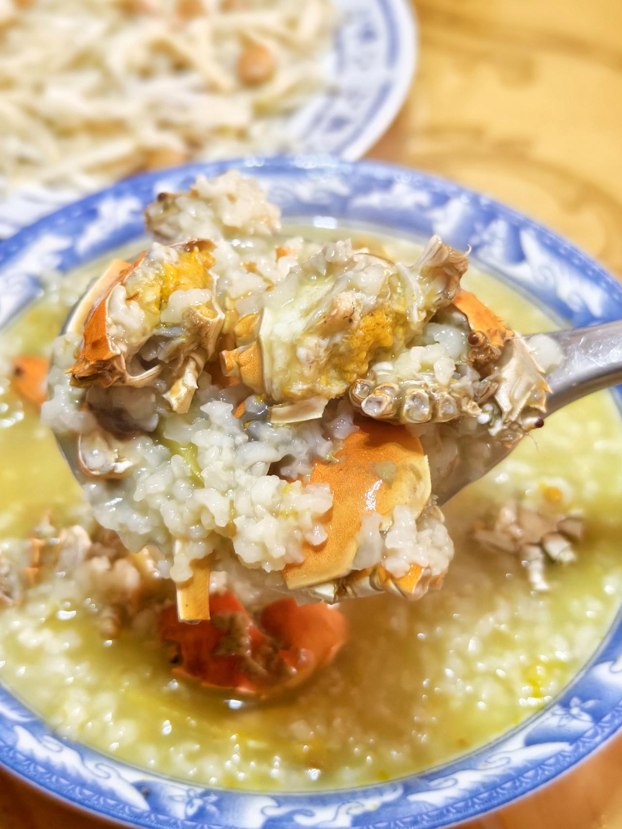 小河蟹和大米熬的稀饭。[笑]
