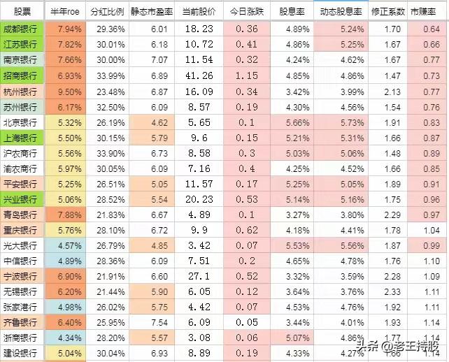 A股上市重点银行亮点分析 1. 高ROE与高分红代表 - 成都银行 - 半年ROE 7.94%(最高之一)、分红比例29.36%,当前股价18.23元,股息率4.89%,动态股息率5.24%(全表前列)。 - 市盈率6.01倍,市赚率0.64(较低,可能被低估)。 - 杭州银行 - 半年ROE 9.50%(全表最高),但分红比例仅23.48%,股息率3.42%。适合偏好成长性的投资者。 2. 低估值高股息银行 - 北京银行 - 市盈率仅 3.62倍(全表最低)、股息率5.66%,动态股息率5.73%。市赚率0.83,估值吸引力强。 - 渝农商行 & 沪农银行 - 股息率分别为4.25%、5.03%,市盈率6.09倍左右,适合稳健收益需求。 3. 大型国有银行 - 工商银行/农业银行/建设银行 - ROE在4.41%-5.08%之间,分红比例稳定(30%左右),股息率3.39%-4.33%,市盈率6.85-8.89倍。市赚率1.14-1.42,估值中等偏高但稳定性强。 4. 股价与涨跌表现 - 今日涨幅最高:招商银行(+1.15%)、成都银行(+0.36%)。 - 低价股:光大银行(3.42元)、民生银行(4.02元)、郑州银行(2.03元)。 关键结论: 1. 高性价比选择: - 成都银行(高ROE+高股息+低市赚率)、北京银行(超低市盈率+高股息)值得关注。 - 杭州银行适合成长型投资者(ROE领先但分红较低)。 2. 稳健分红型: - 农商行(如沪农银行、渝农商行)和国有大行(工行、建行)股息率普遍超4%,适合长期配置。 3. 风险提示: - 部分银行如郑州银行ROE仅3.62%、市盈率高达9.84倍,需谨慎评估资产质量。 - 动态股息率与股价波动相关,需结合市场环境分析。
